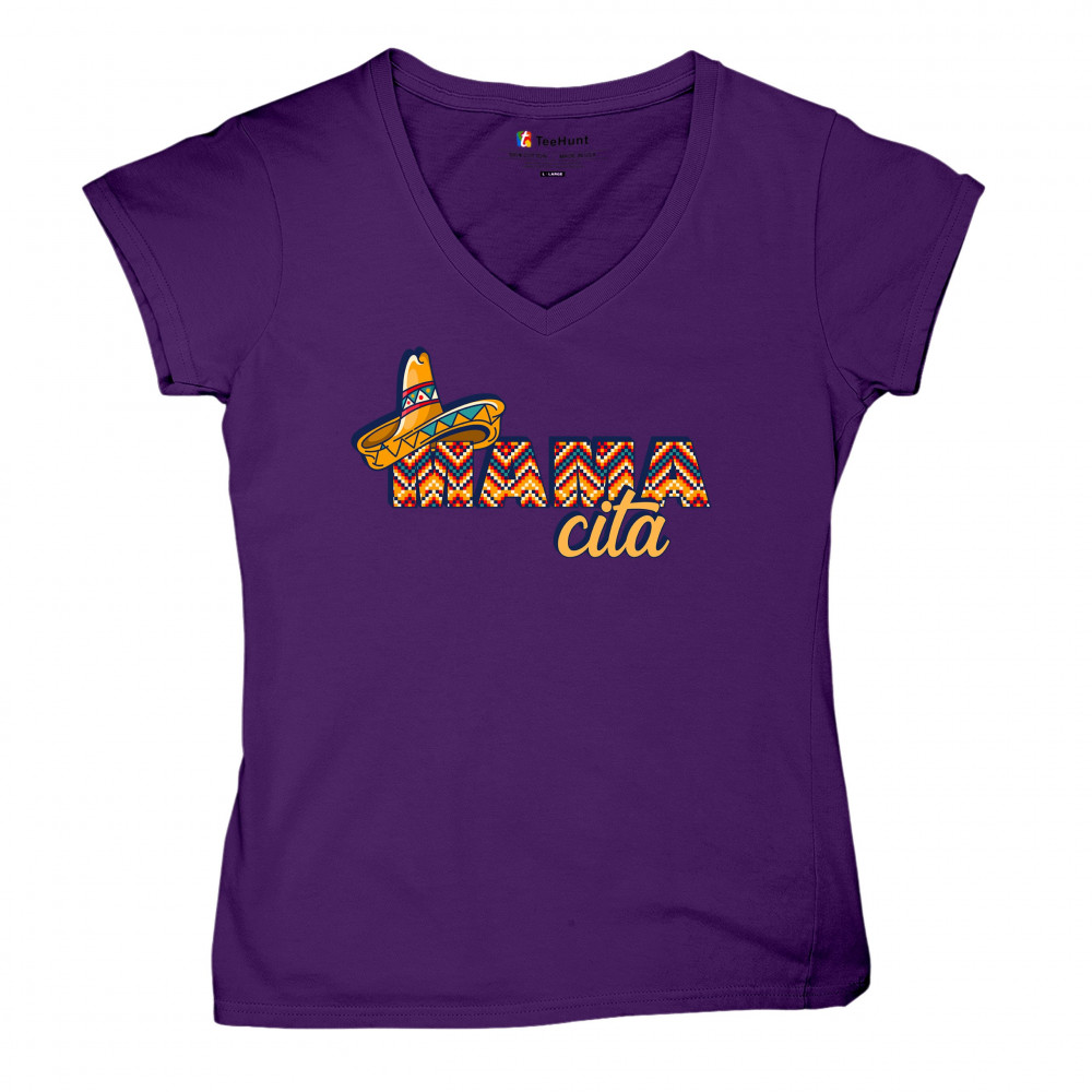 FUNNY MAMACITA CINCO DE MAYO women's v-neck t-shirt mexican sombrero may 5 tee purple
