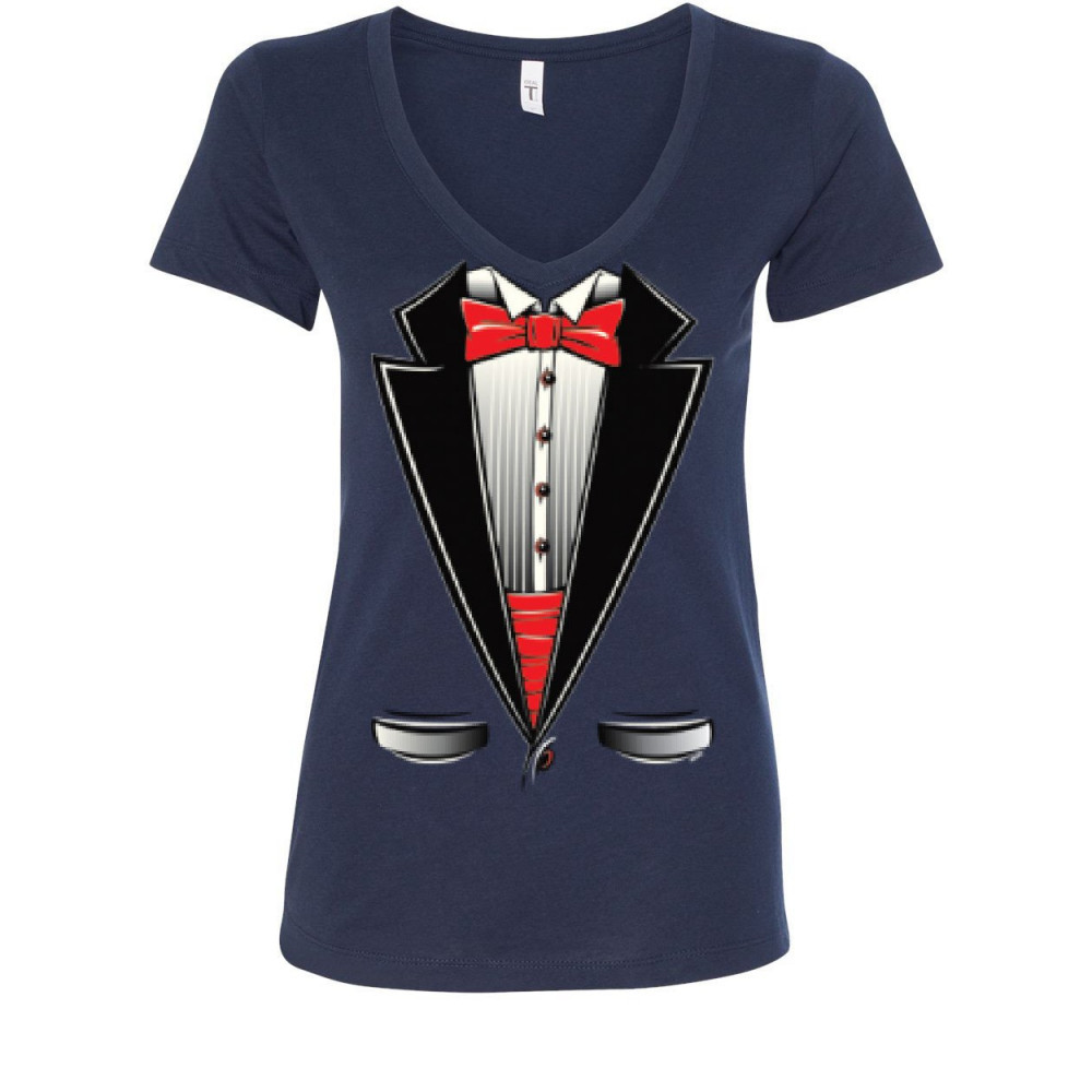 FUNNY TUXEDO BOW TIE v-neck t-shirt tux wedding party navy blue