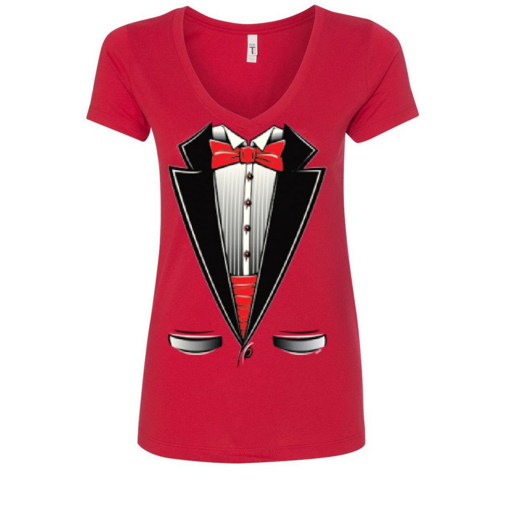 FUNNY TUXEDO BOW TIE v-neck t-shirt tux wedding party red