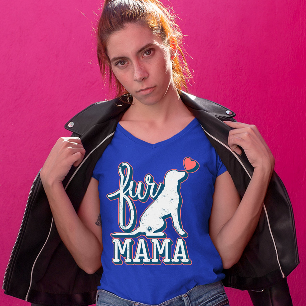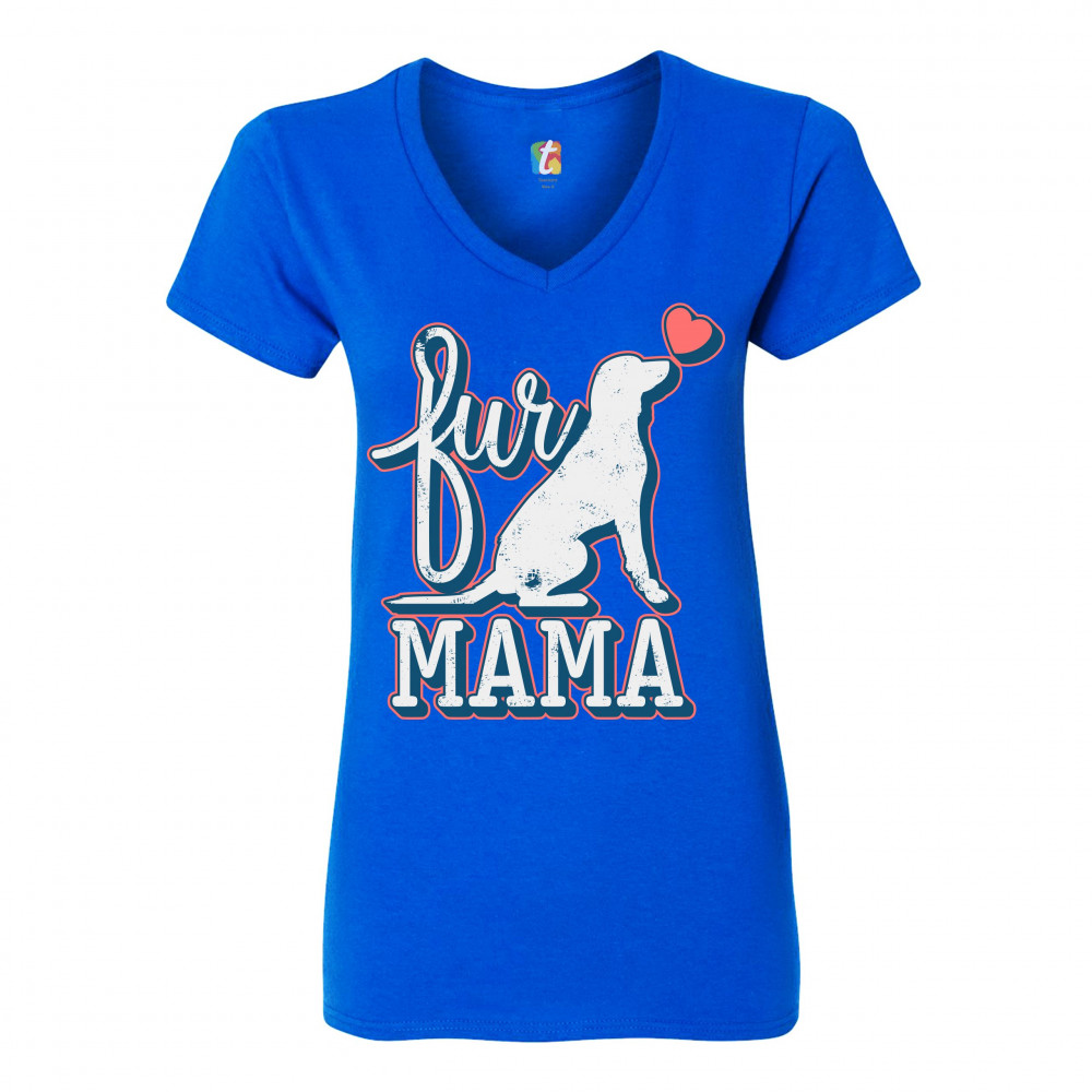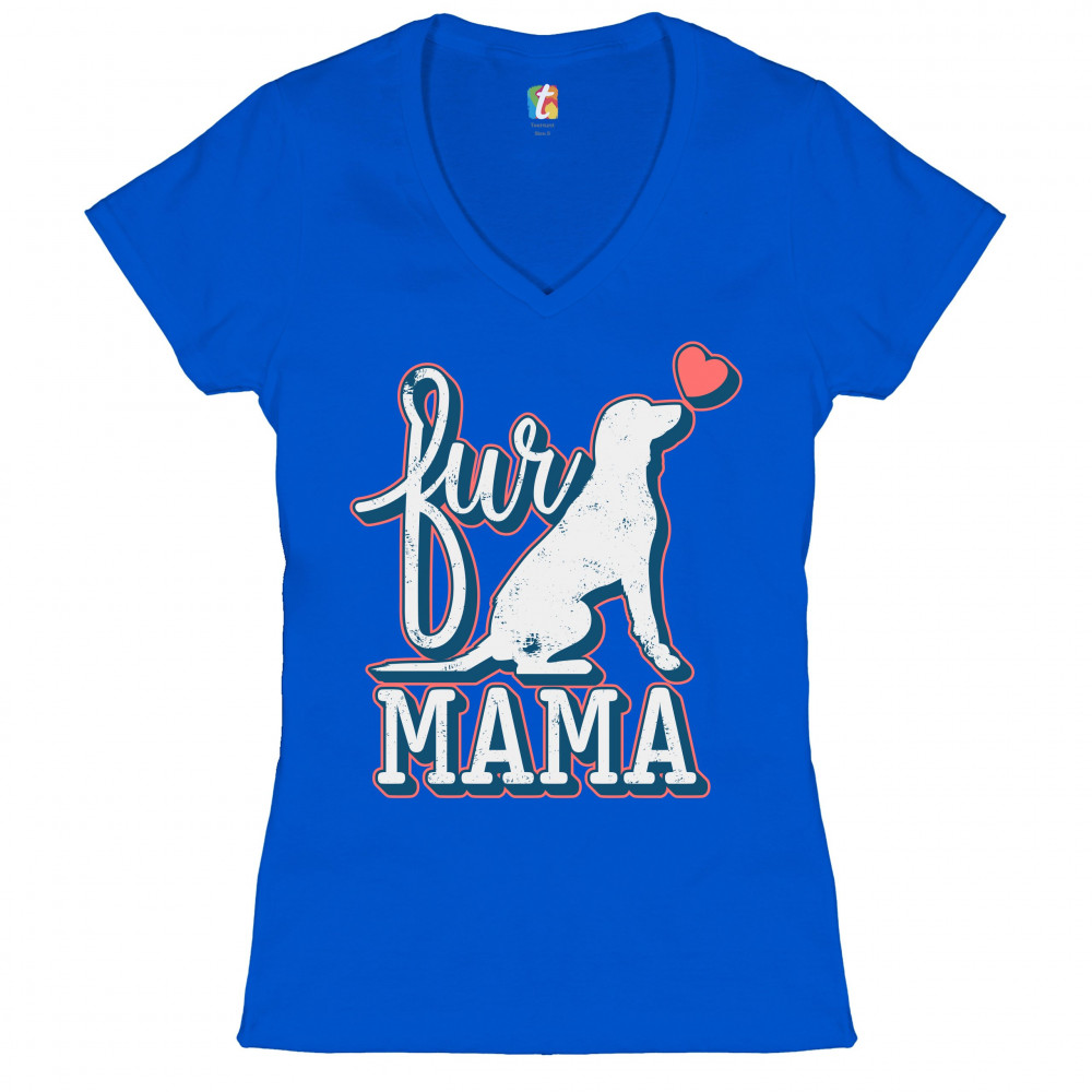FUR MAMA women's v-neck t-shirt i love my dog pet owner mother's day tee royal blue