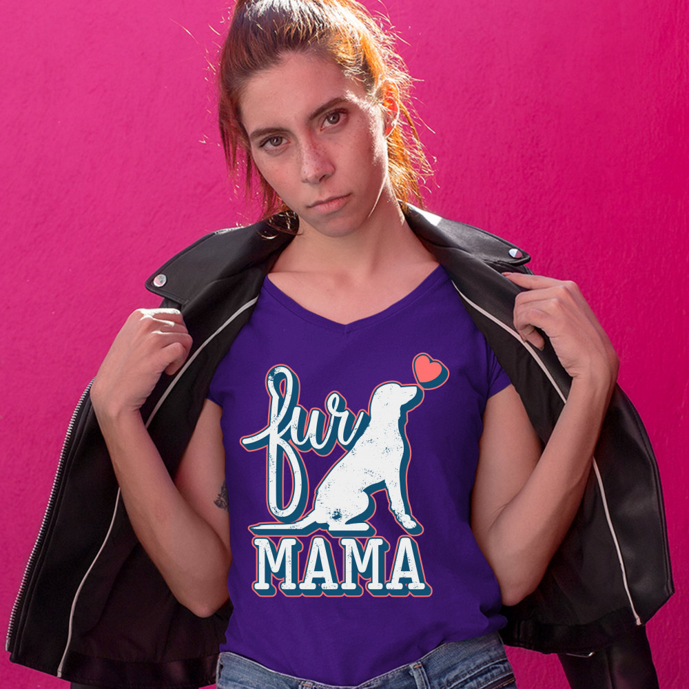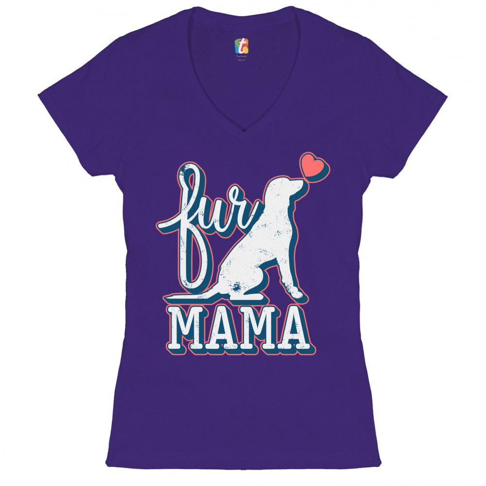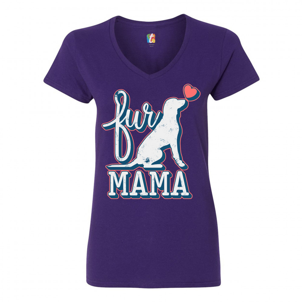 FUR MAMA women's v-neck t-shirt i love my dog pet owner mother's day tee purple