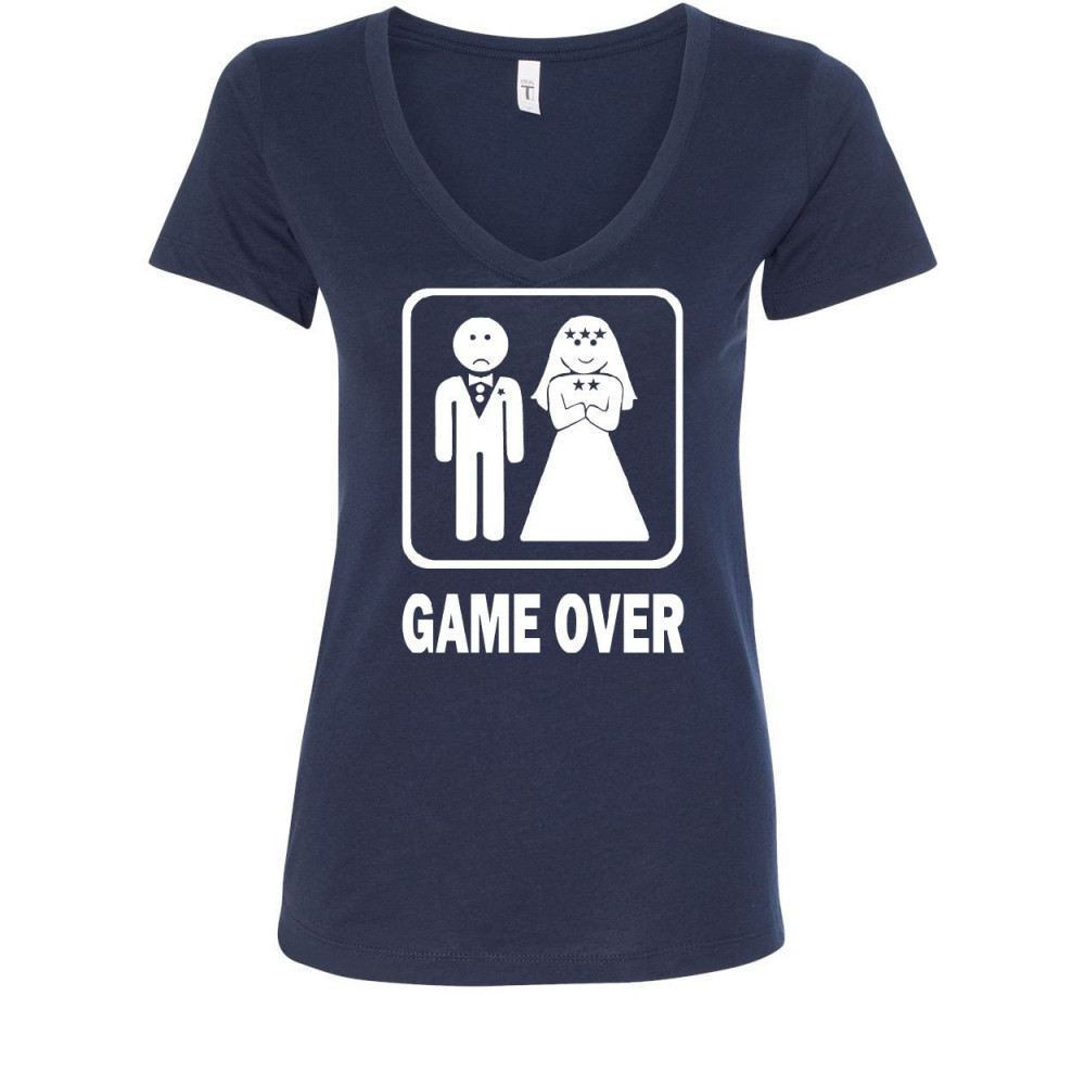 GAME OVER FUNNY v-neck t-shirt groom and bride wedding navy blue