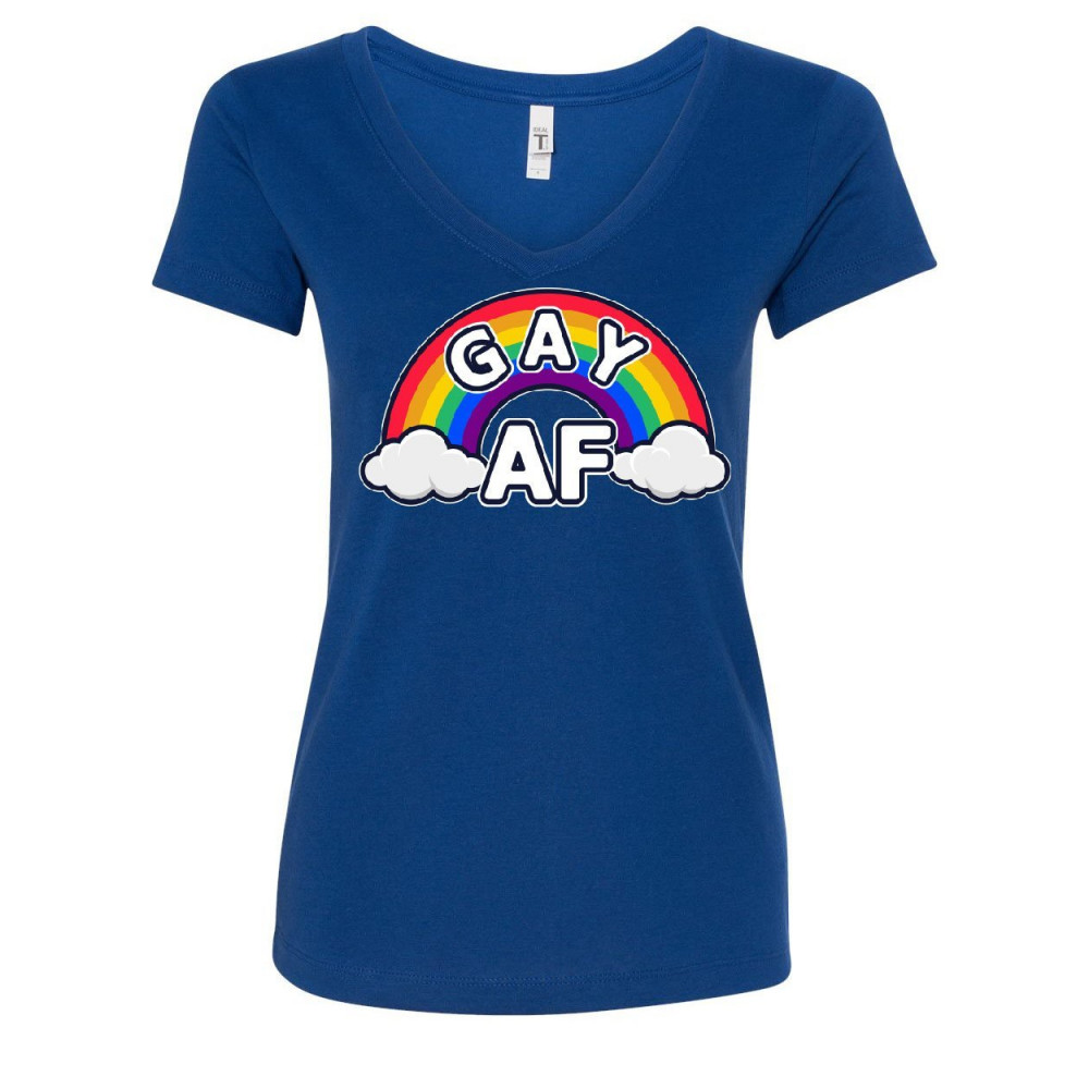 GAY AF RAINBOW gay af women's v-neck t-shirt rainbow flag lgbtq equal rights pride love wins royal blue
