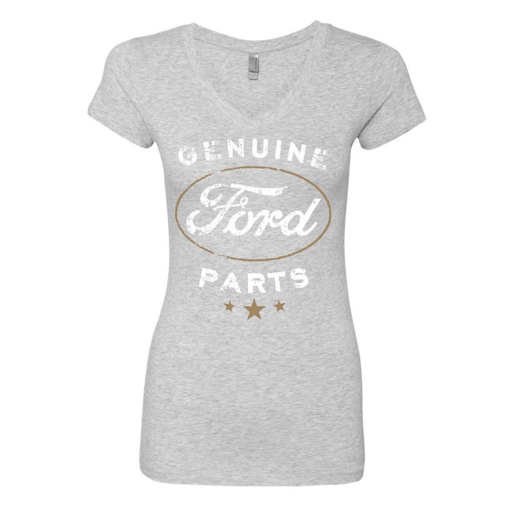 GENUINE FORD PARTS women's v-neck t-shirt distressed ford logo gray
