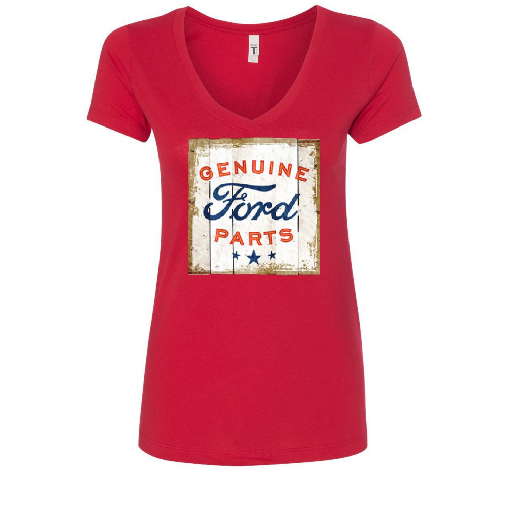 GENUINE FORD PARTS OLD SIGN v-neck t-shirt licensed ford truck red