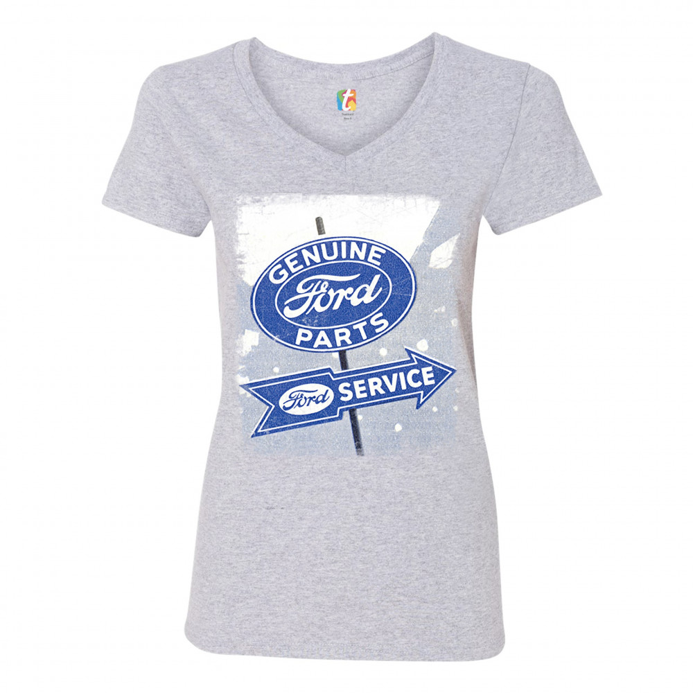 GENUINE FORD PARTS women's v-neck t-shirt high performance licensed tee gray
