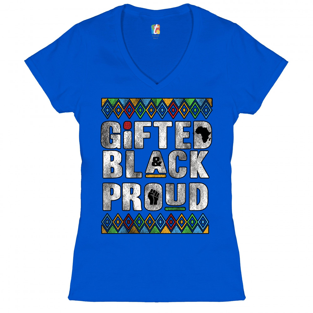 GIFTED BLACK & PROUD women's v-neck t-shirt african american blm activism tee royal blue