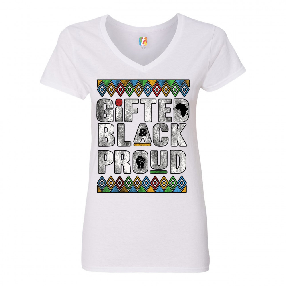 GIFTED BLACK & PROUD women's v-neck t-shirt african american blm activism tee white