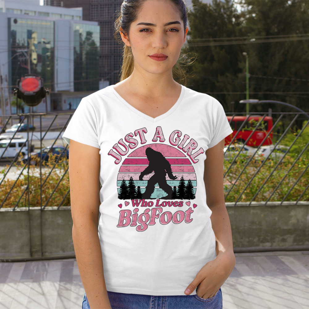 Celebrate your love for all things cryptid with this cute and retro Bigfoot design. Perfect for girls obsessed with Sasquatch, this playful graphic features a pink and teal sunset, ideal for fans, campers, explorers, and believers. A fun gift for paranormal lovers and outdoorsy adventurers alike.