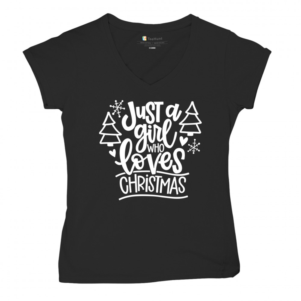 A cute Christmas graphic with trees and snowflakes—perfect for girls who love the festive season and cozy winter holiday vibes.