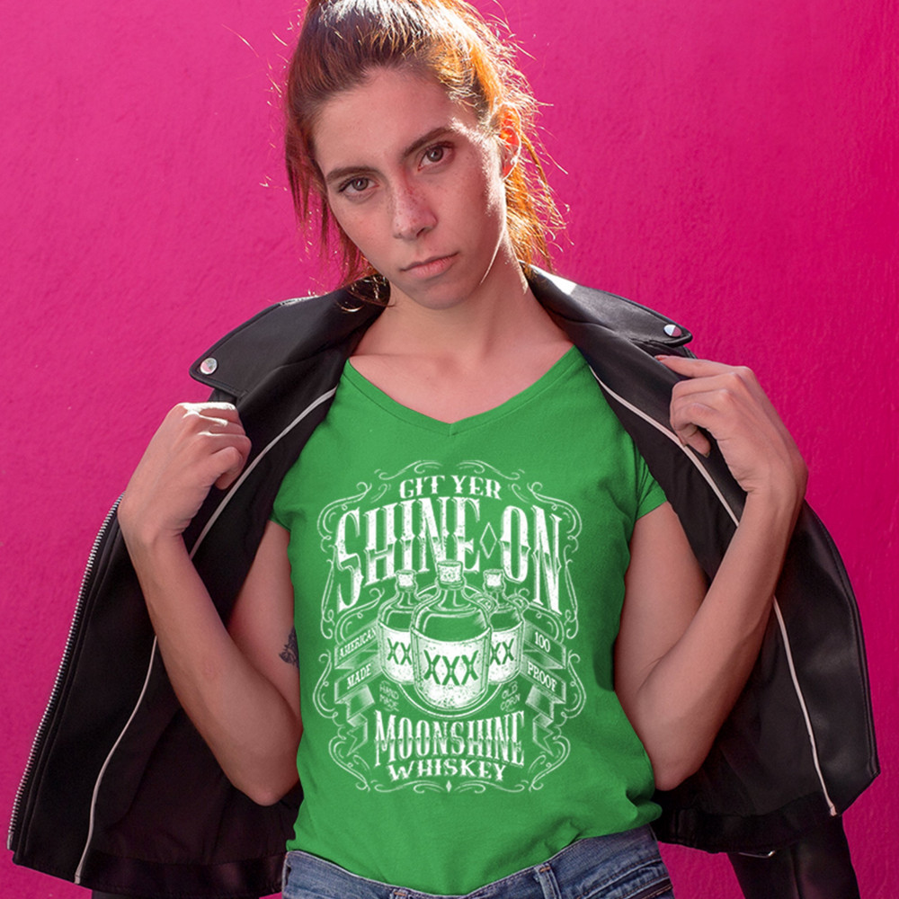 A funny print featuring three mason jars with labels that say: "XXX". The print also says: "Git Yer Shine On, Moonshine Whiskey, American Made, 100 Proof, Hand Made, Old Corn". A great choice for an old school person who doesn't mind a glass or two.