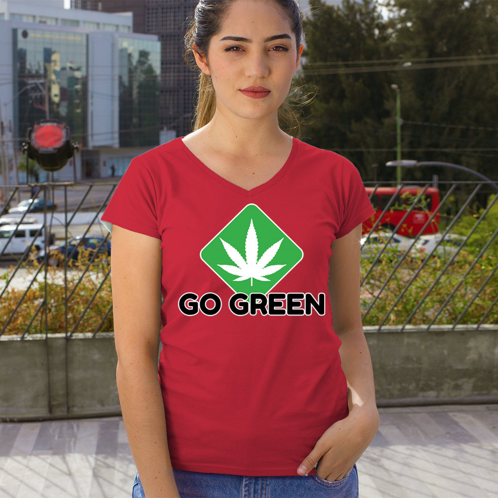 Bold Go Green design with cannabis leaf icon. Perfect for 420 fans, eco-conscious wearers, stoners, and marijuana advocates.