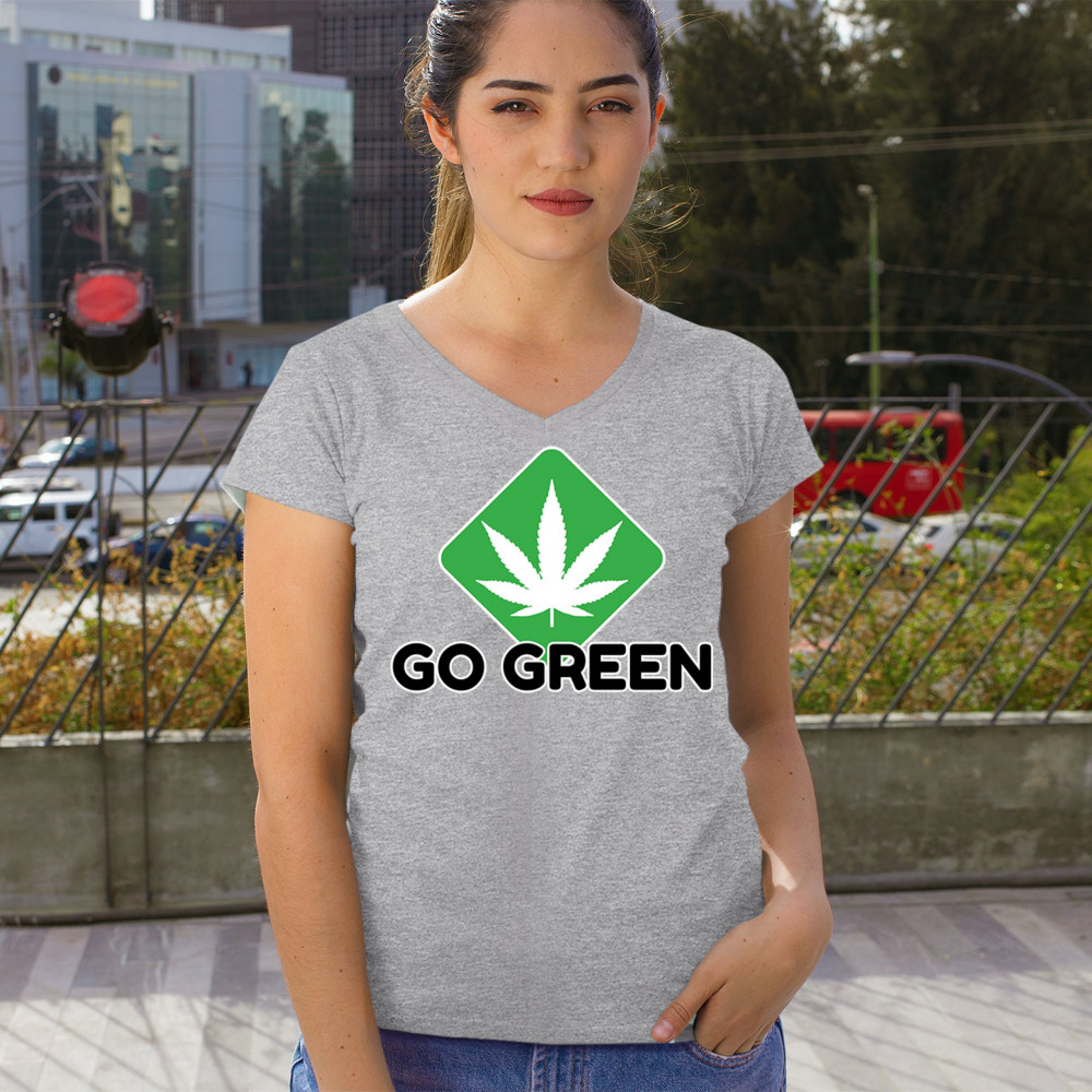 Bold Go Green design with cannabis leaf icon. Perfect for 420 fans, eco-conscious wearers, stoners, and marijuana advocates.