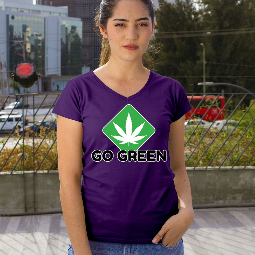 Bold Go Green design with cannabis leaf icon. Perfect for 420 fans, eco-conscious wearers, stoners, and marijuana advocates.