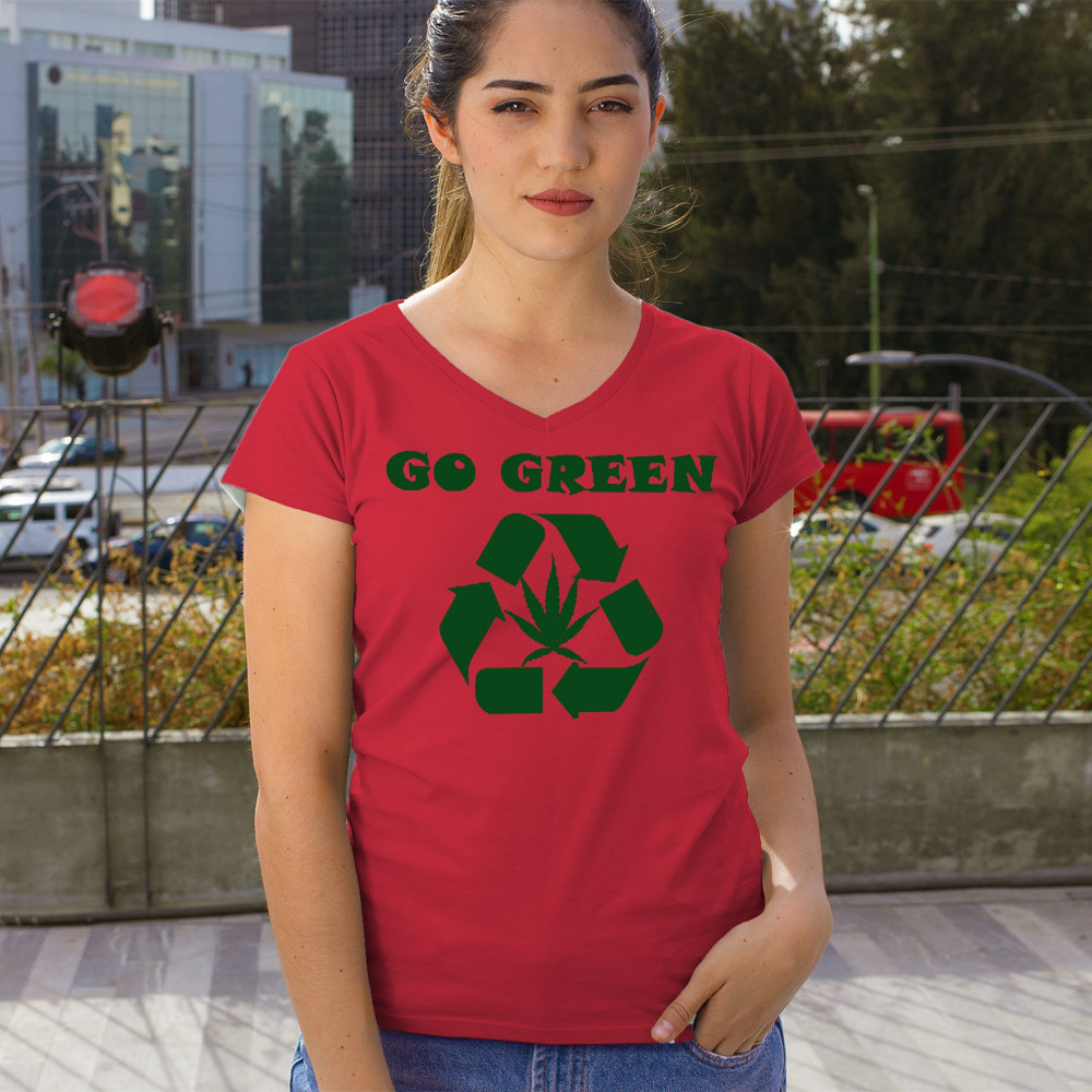 "Go Green" design combining a recycling symbol with a cannabis leaf. Perfect for those who love Mary Jane, sustainable living, and stoned humor.