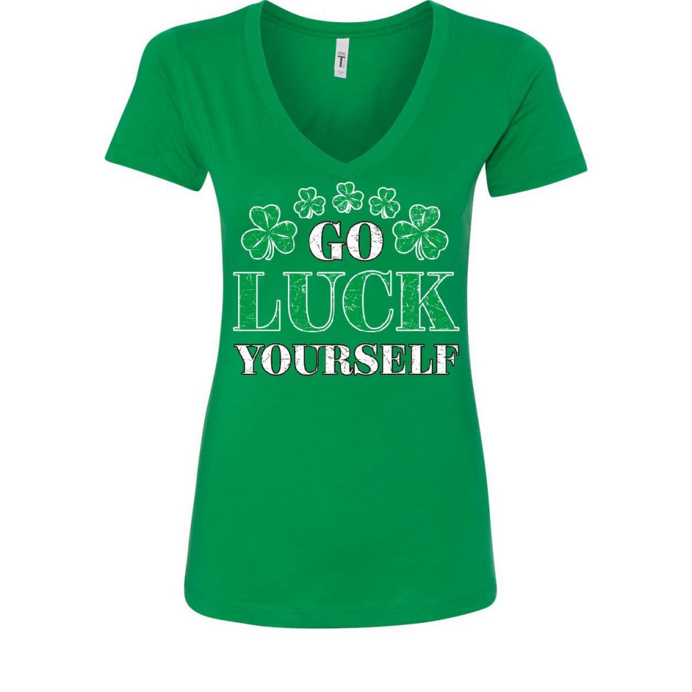 GO LUCK YOURSELF women's v-neck t-shirt st. patrick's day offensive funny irish green