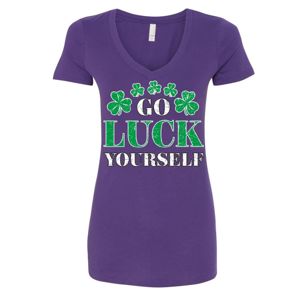 GO LUCK YOURSELF women's v-neck t-shirt st. patrick's day offensive funny irish purple
