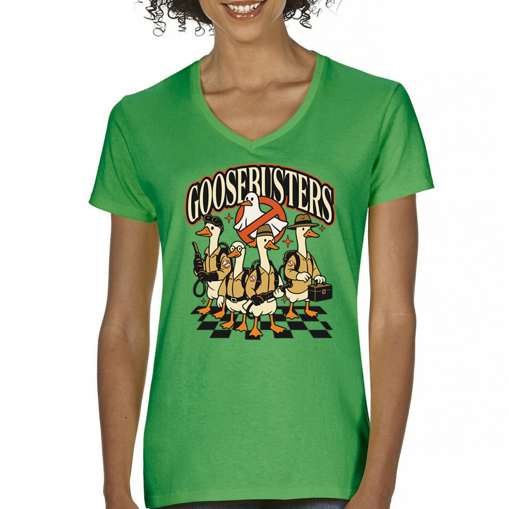 Goosebusters Halloween goose parody shirt – spooky goose design with silly goose humor, comedy bird style, Trick or Treat fun, and creepy night vibes.