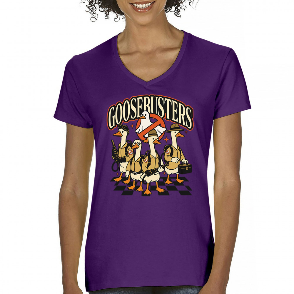 Goosebusters Halloween goose parody shirt – spooky goose design with silly goose humor, comedy bird style, Trick or Treat fun, and creepy night vibes.