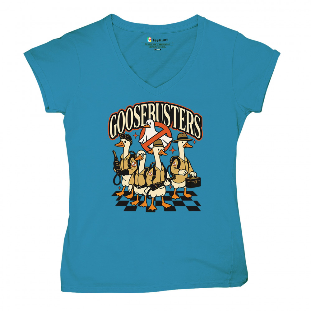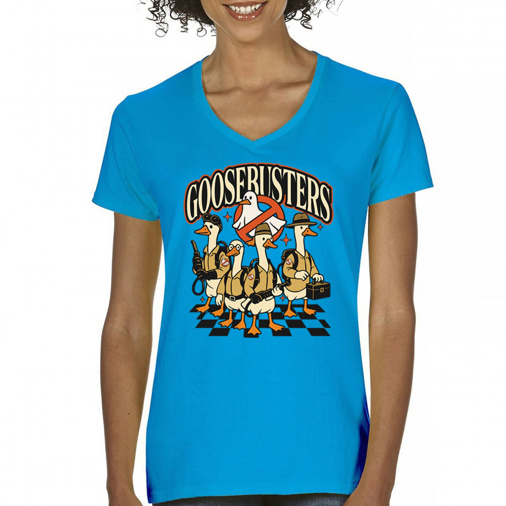 Goosebusters Halloween goose parody shirt – spooky goose design with silly goose humor, comedy bird style, Trick or Treat fun, and creepy night vibes.