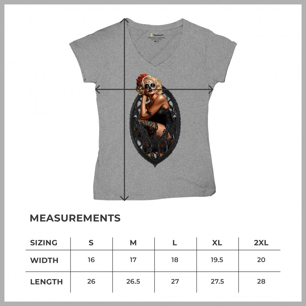 This sultry sugar skull pinup design blends gothic lace, seductive pose, and ornate frame detail for a bold Day of the Dead tribute. With striking makeup and vintage lingerie styling, it’s perfect for fans of macabre fashion, calavera art, and dark romance. A hauntingly beautiful mix of allure, attitude, and Dia de los Muertos charm.