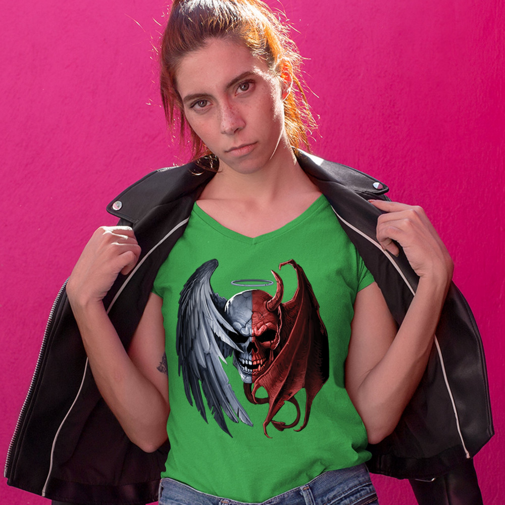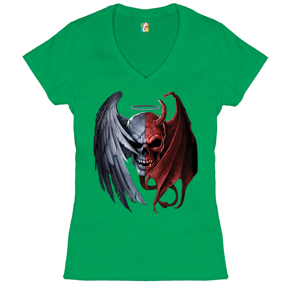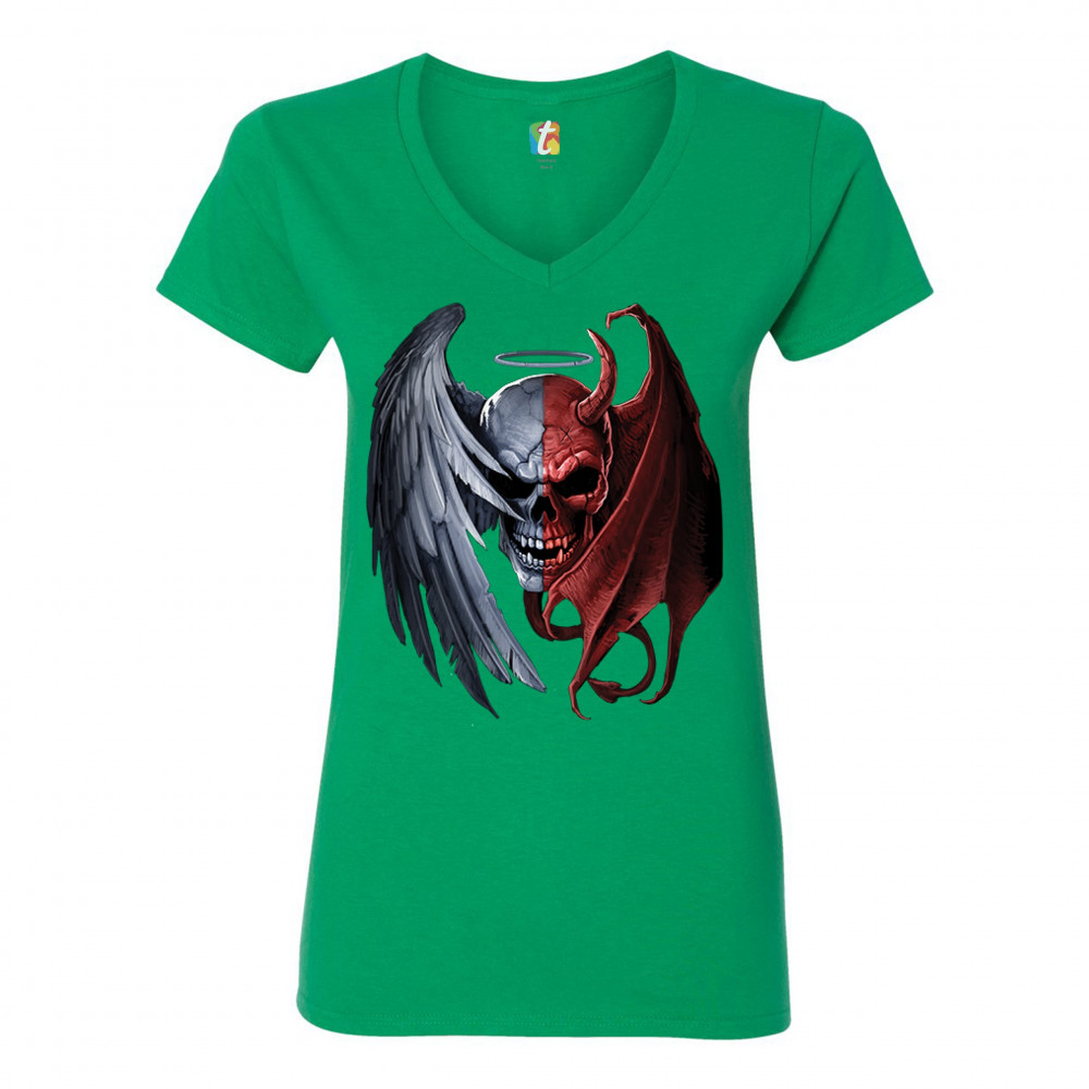 GOTHIC DEMON ANGEL SKULL women's v-neck t-shirt horror nightmare halloween tee green