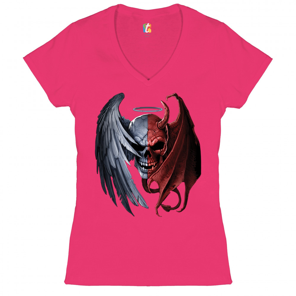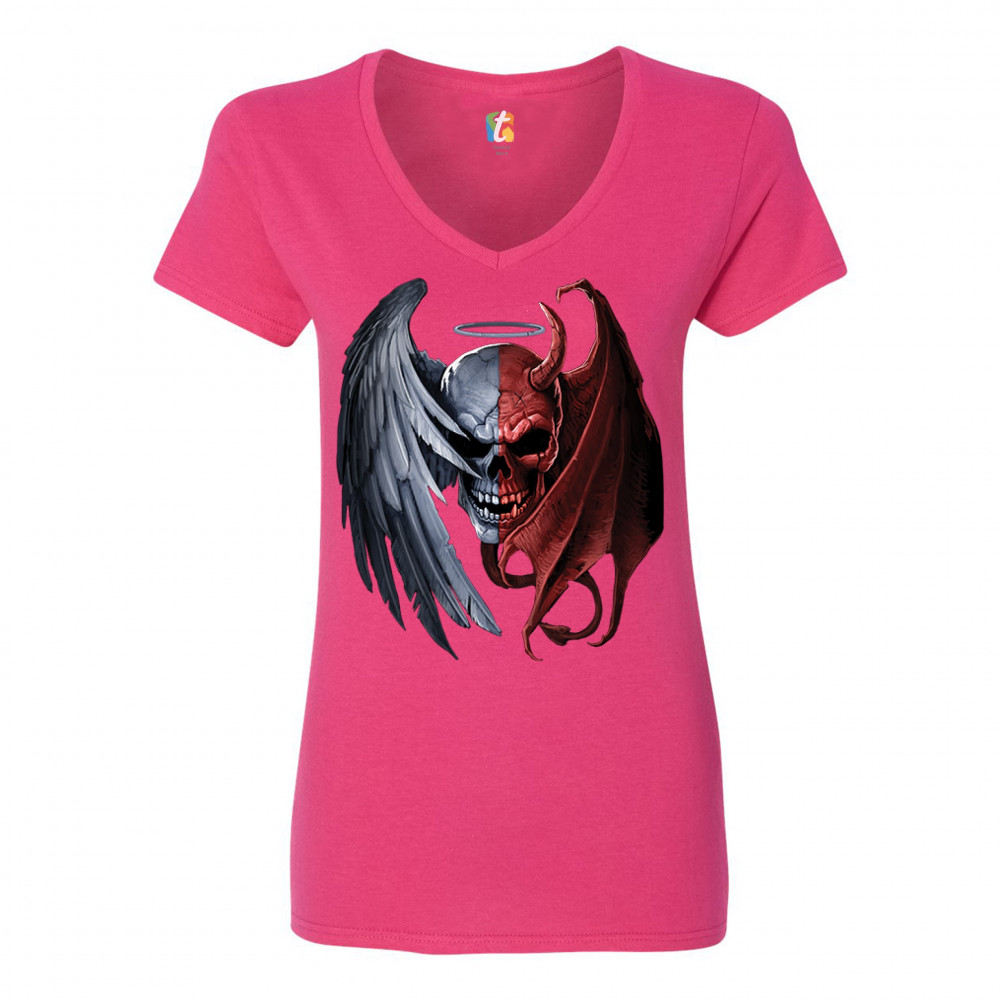 GOTHIC DEMON ANGEL SKULL women's v-neck t-shirt horror nightmare halloween tee pink