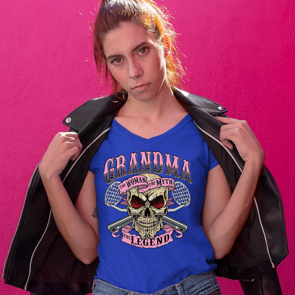 GRANDMA THE WOMAN THE MYTH THE LEGEND women's v-neck t-shirt mother's day tee royal blue