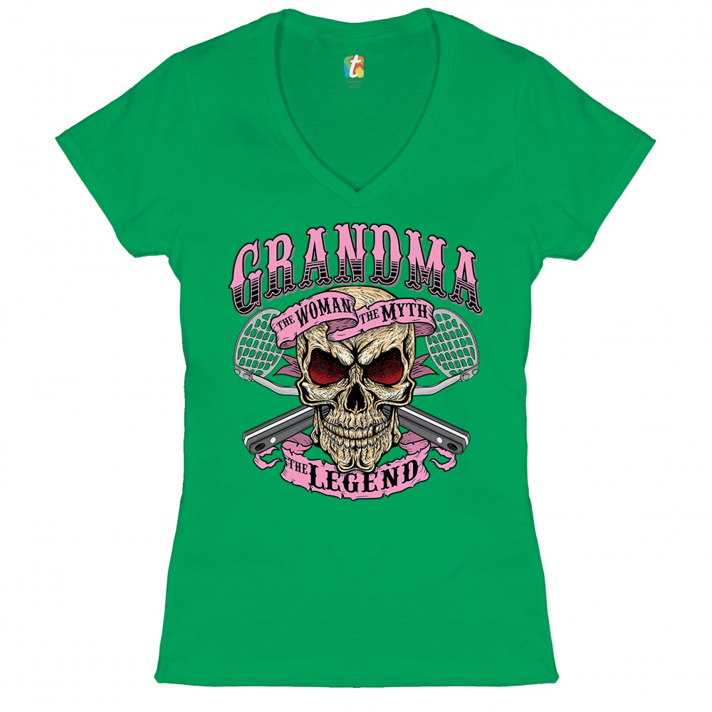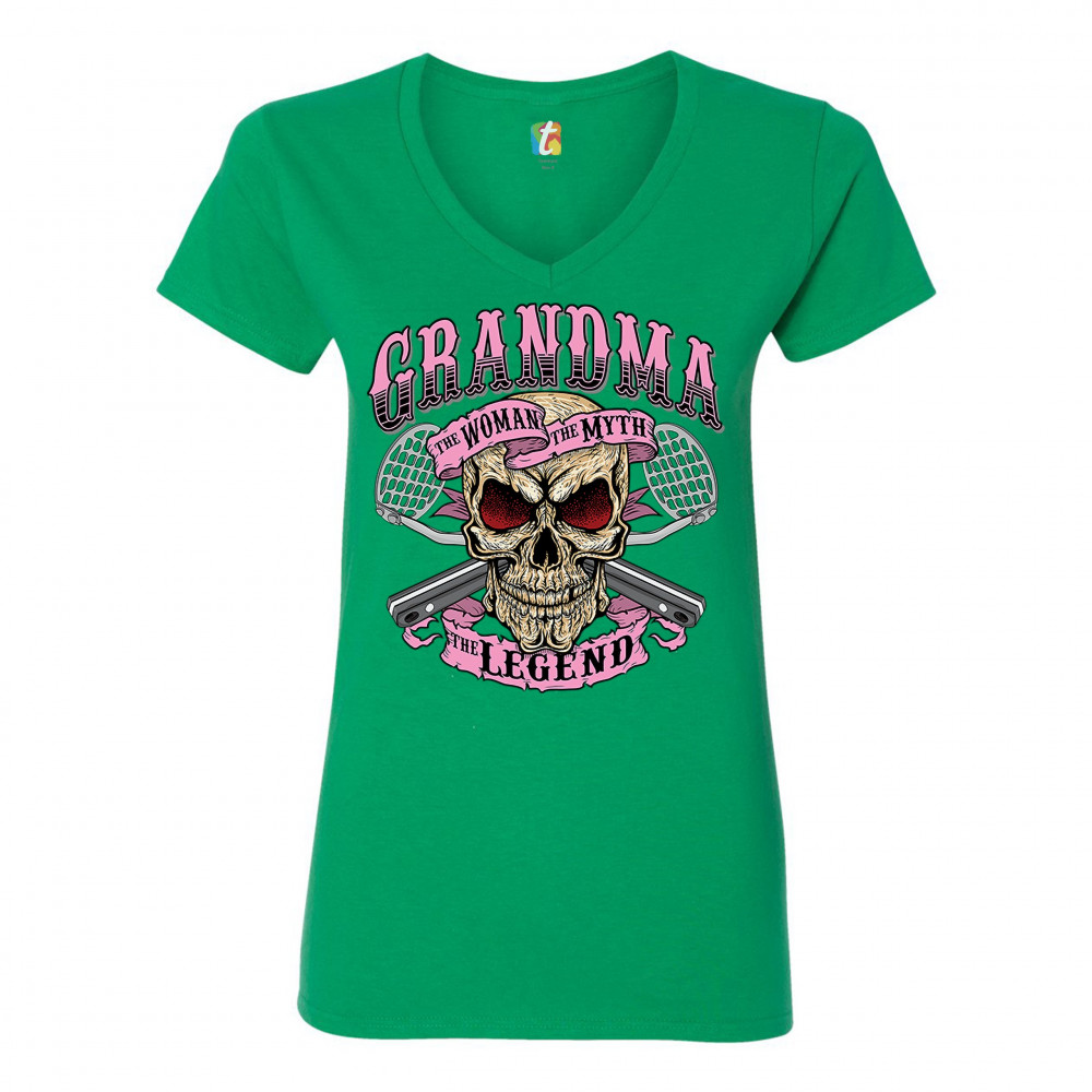 GRANDMA THE WOMAN THE MYTH THE LEGEND women's v-neck t-shirt mother's day tee green