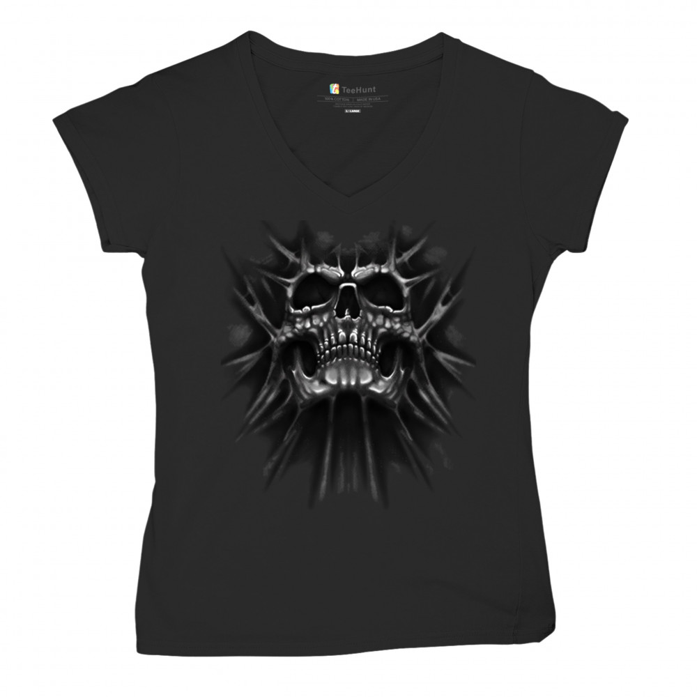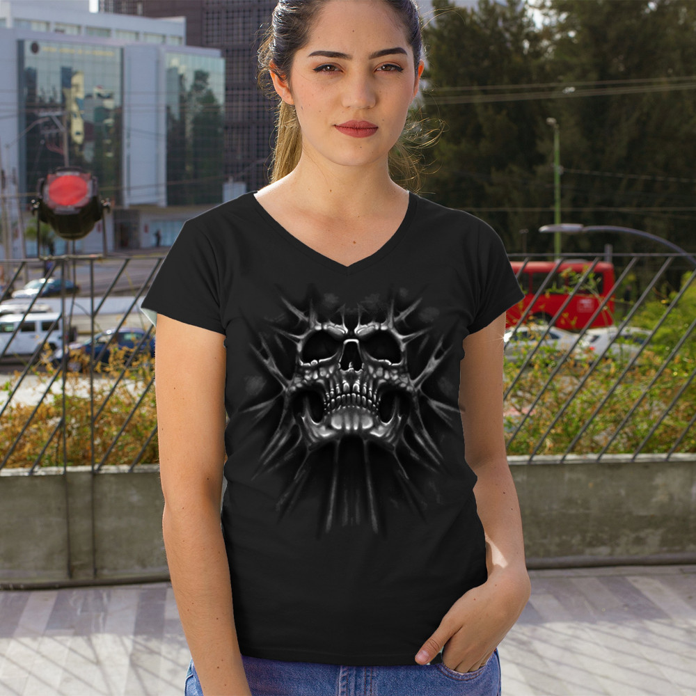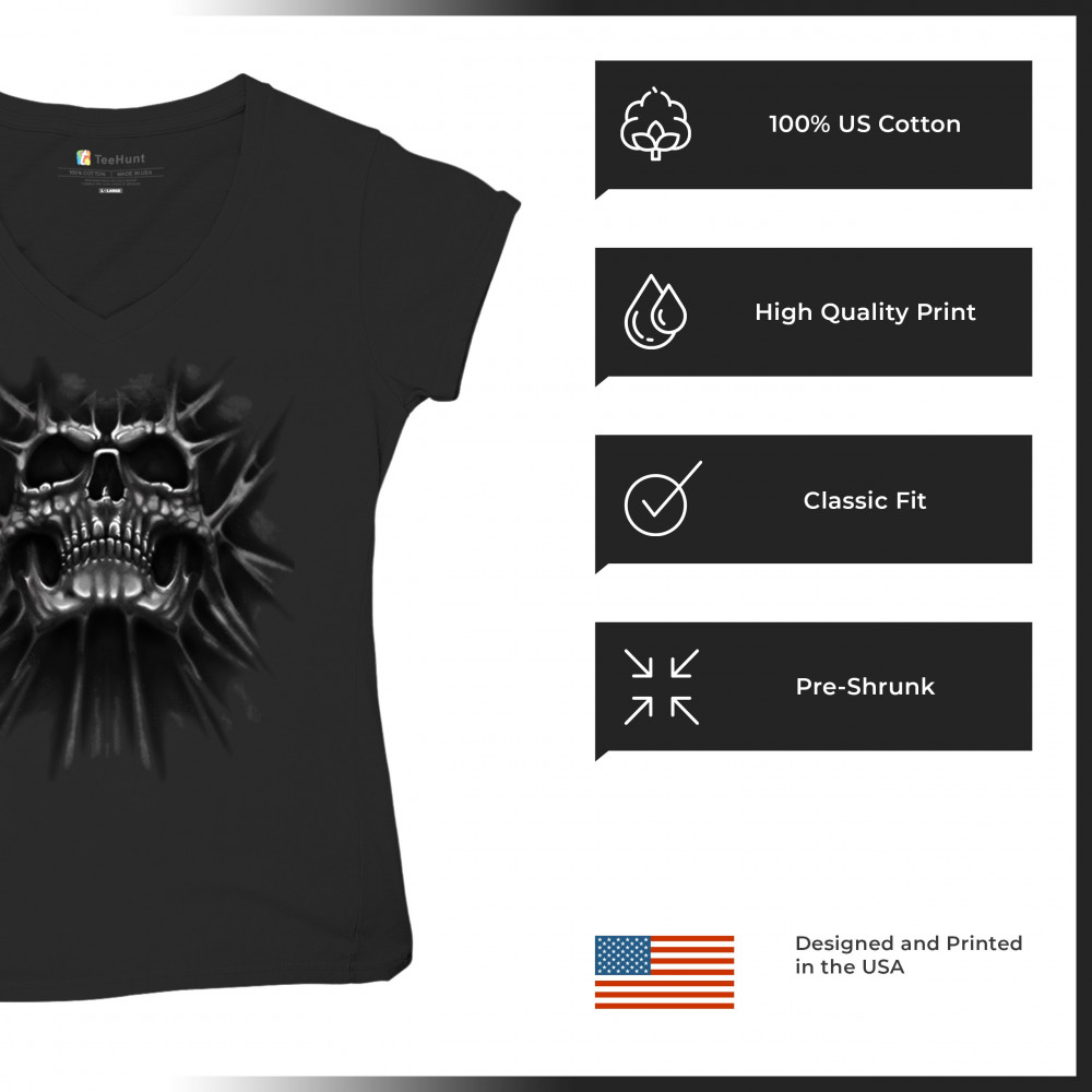 Gothic skull biker shirt with roots design. Perfect for Metalhead, Rock n Roll fans, edgy rebel fashion, and spooky Halloween vibes.