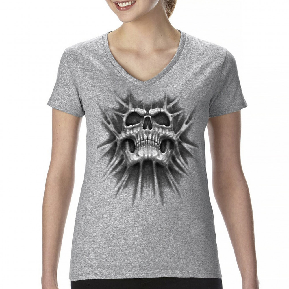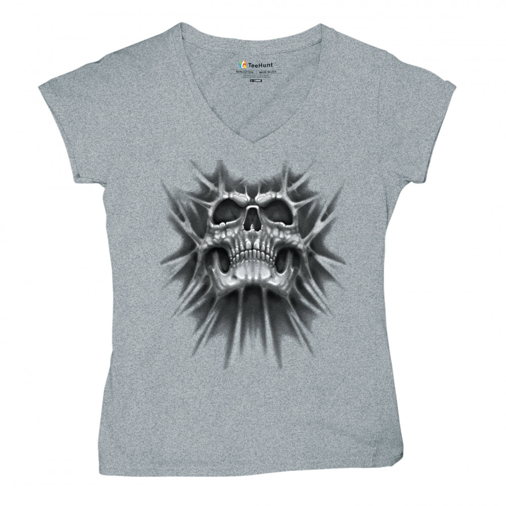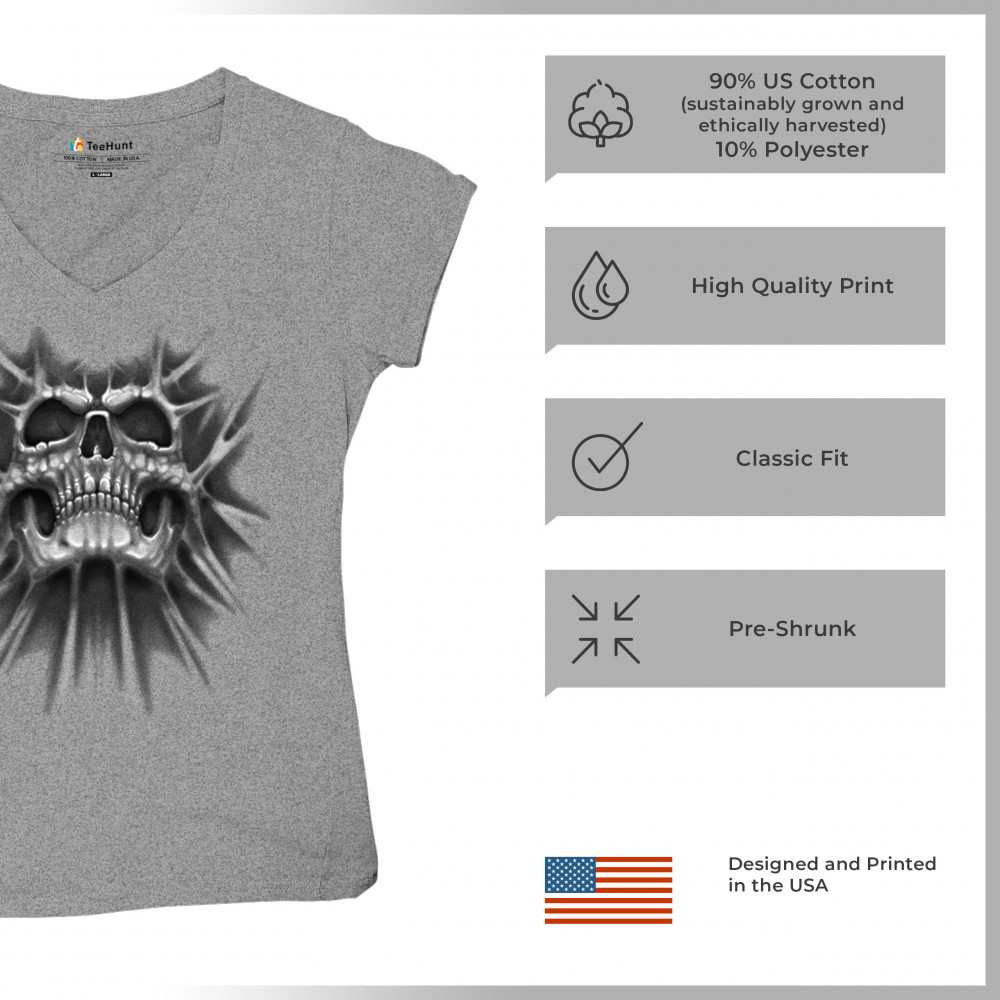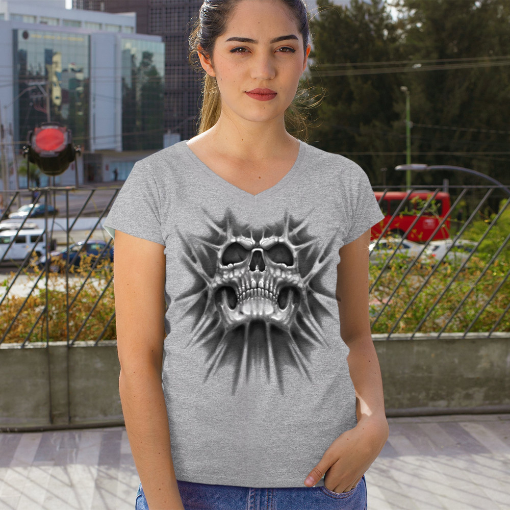 Gothic skull biker shirt with roots design. Perfect for Metalhead, Rock n Roll fans, edgy rebel fashion, and spooky Halloween vibes.