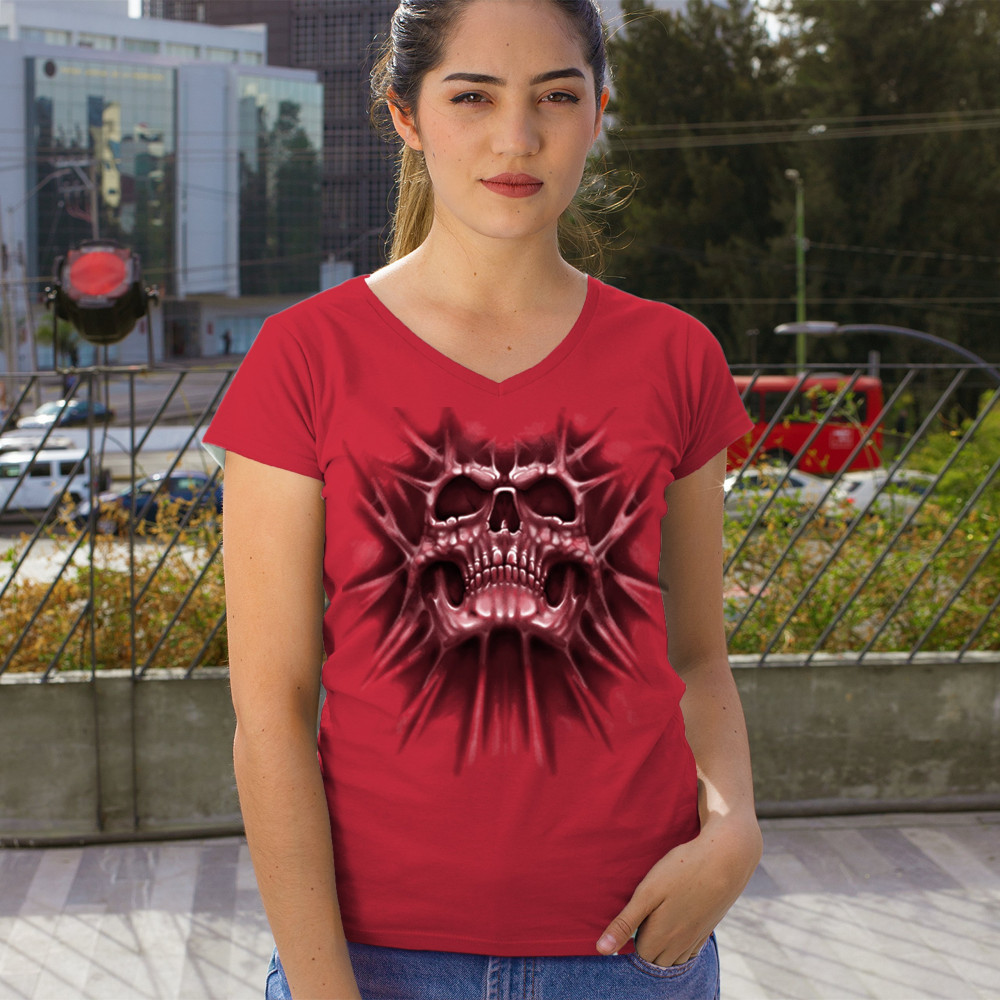 Gothic skull biker shirt with roots design. Perfect for Metalhead, Rock n Roll fans, edgy rebel fashion, and spooky Halloween vibes.