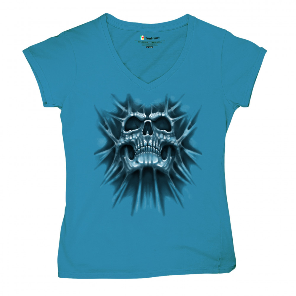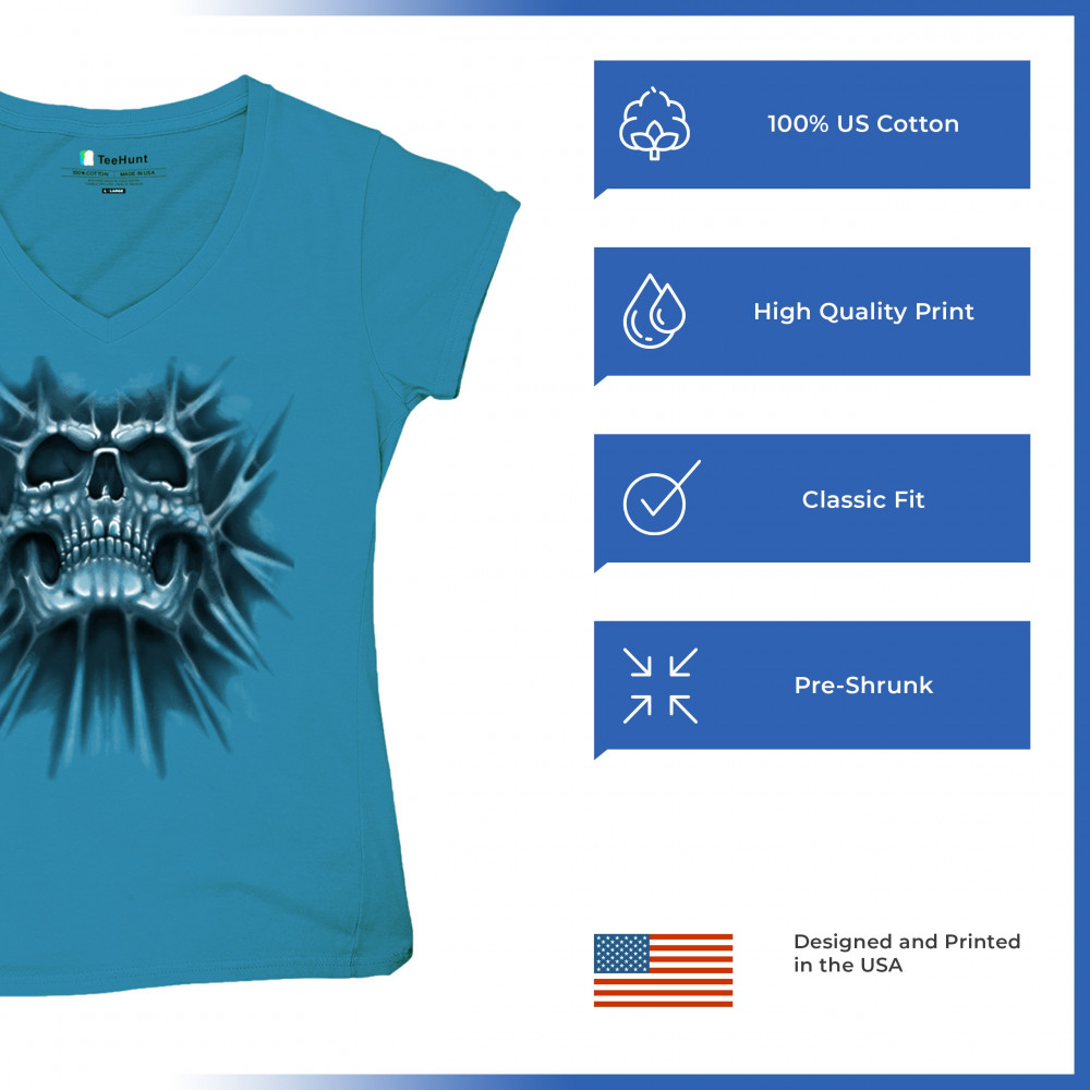 Gothic skull biker shirt with roots design. Perfect for Metalhead, Rock n Roll fans, edgy rebel fashion, and spooky Halloween vibes.