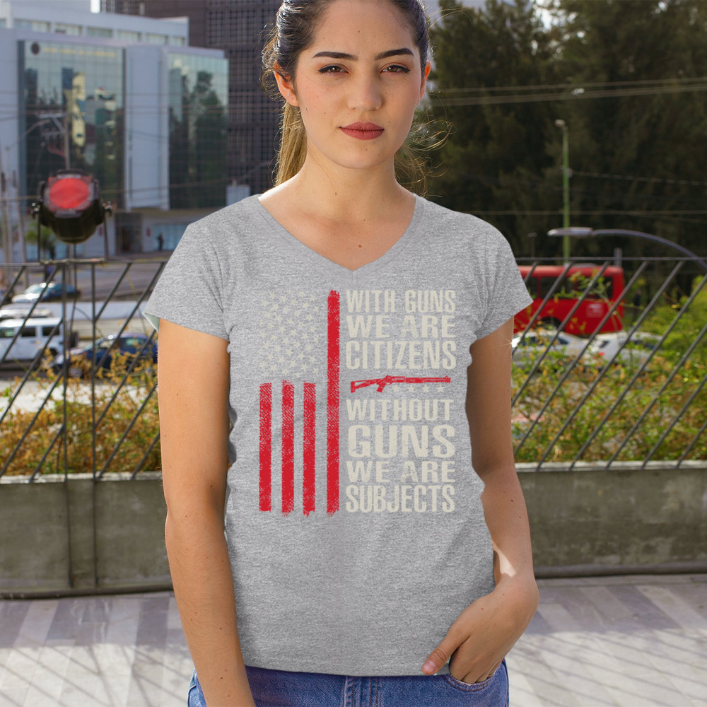 Make your voice heard with this powerful pro-2A design featuring an AR-15 graphic and distressed red American flag. The quote “With Guns We Are Citizens, Without Guns We Are Subjects†speaks directly to the heart of liberty and personal defense. A must-have for patriots, protestors, and gun rights supporters who defend the Constitution.