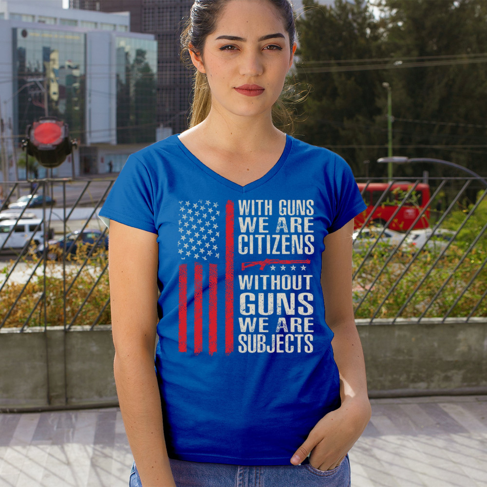 Make your voice heard with this powerful pro-2A design featuring an AR-15 graphic and distressed red American flag. The quote “With Guns We Are Citizens, Without Guns We Are Subjects†speaks directly to the heart of liberty and personal defense. A must-have for patriots, protestors, and gun rights supporters who defend the Constitution.