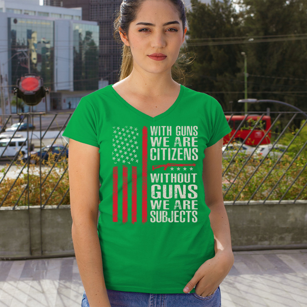 Make your voice heard with this powerful pro-2A design featuring an AR-15 graphic and distressed red American flag. The quote “With Guns We Are Citizens, Without Guns We Are Subjects†speaks directly to the heart of liberty and personal defense. A must-have for patriots, protestors, and gun rights supporters who defend the Constitution.
