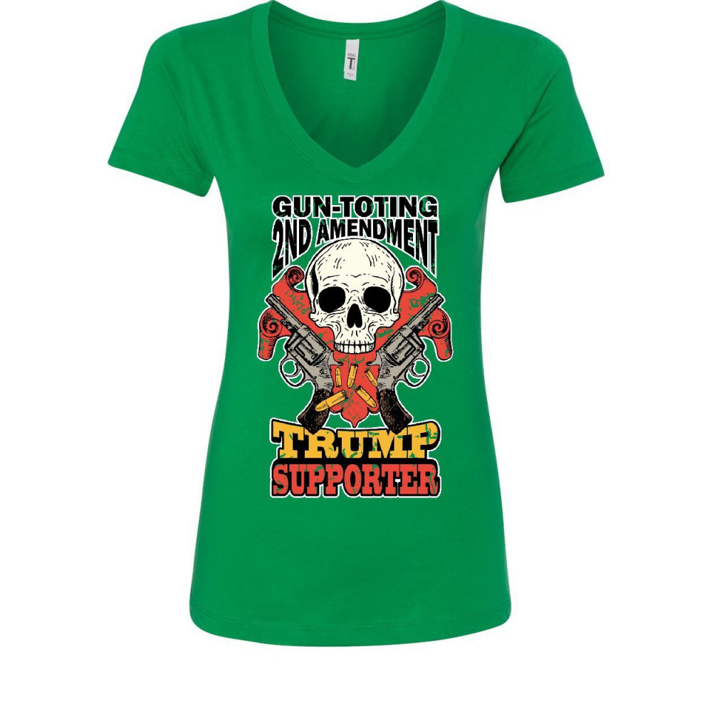 GUN-TOTING 2ND AMENDMENT TRUMP SUPPORTER gun-toting trump supporter women's v-neck t-shirt 2nd amendment skull revolvers green
