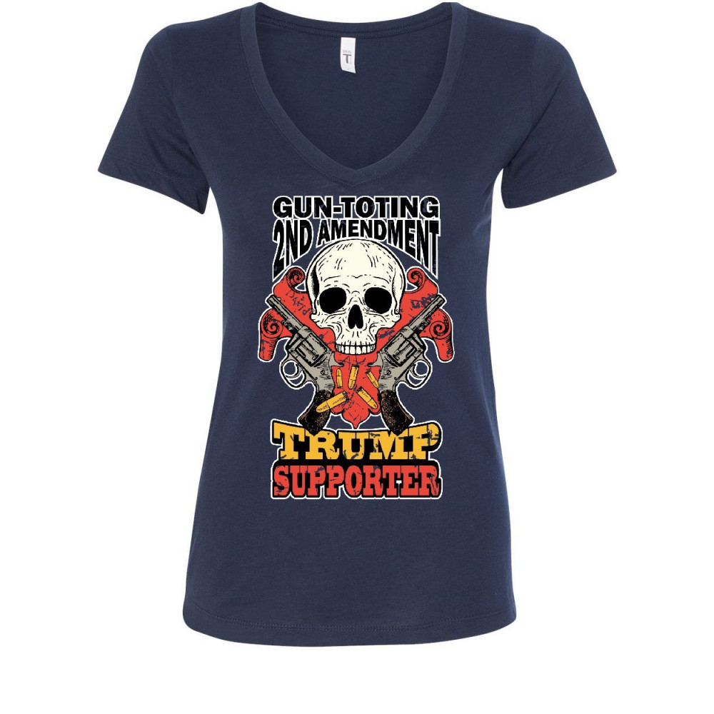 GUN-TOTING 2ND AMENDMENT TRUMP SUPPORTER gun-toting trump supporter women's v-neck t-shirt 2nd amendment skull revolvers navy blue