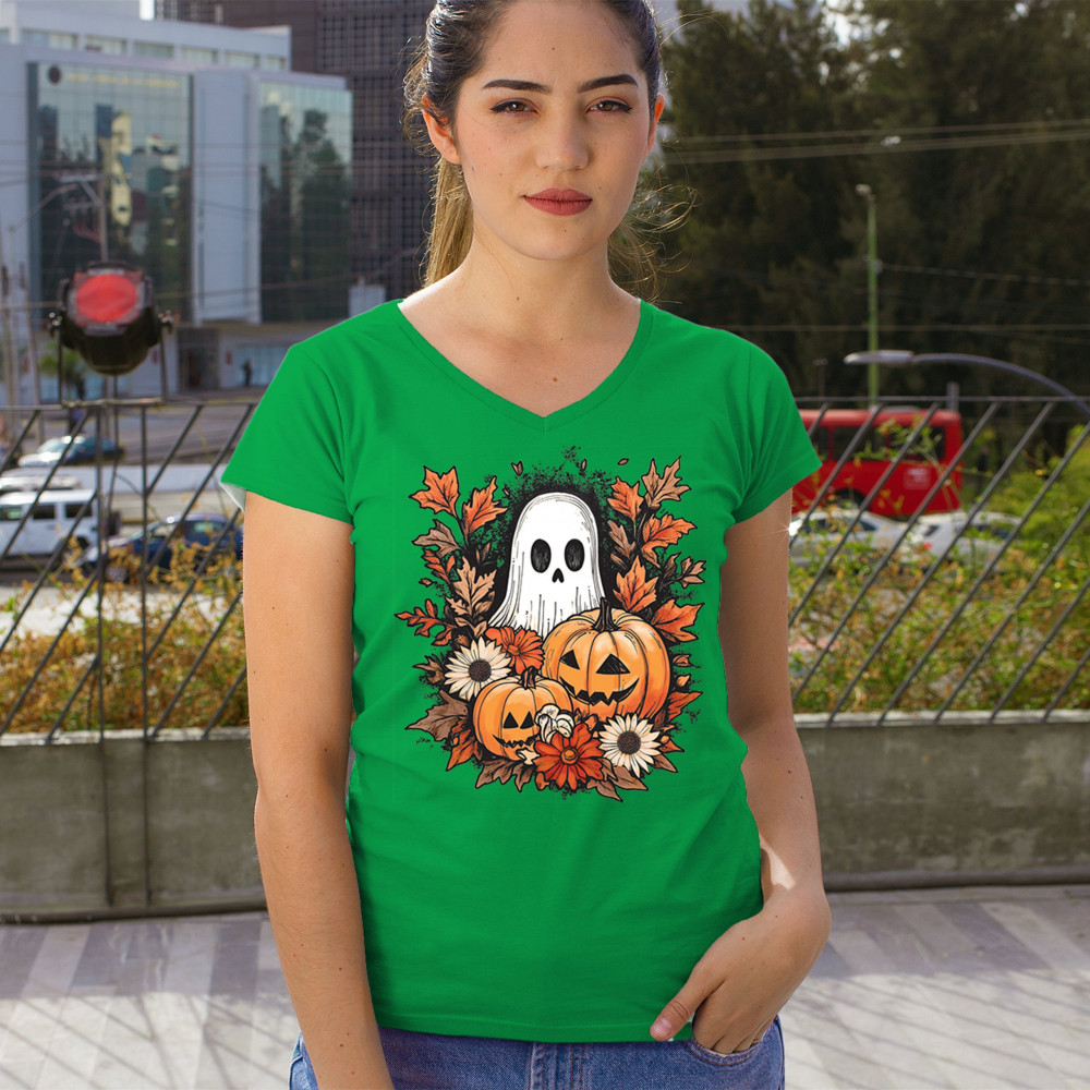 Celebrate the arrival of fall with this delightful design featuring pumpkins, autumn leaves, flowers, and a cute ghost. It's the perfect addition to your Halloween and autumn-themed wardrobe, or even as decor to welcome the fall spirit into your home. The combination of spooky and cozy elements creates a festive yet warm vibe, ideal for Halloween parties, pumpkin patch trips, or just enjoying the beautiful fall season.