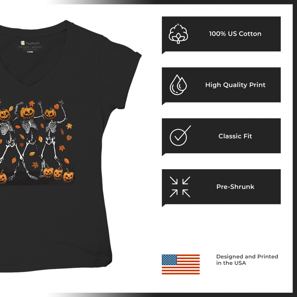 Add a touch of spooky fun to your wardrobe with this lively design featuring pumpkin-headed skeletons dancing through a swirl of autumn leaves. Perfect for Halloween parties, trick-or-treating, and fall festivals, this design is a must-have for anyone who enjoys the whimsical side of the spooky season. Made with comfort and quality in mind, this is the perfect apparel for all your October gatherings and events. Wear it to show off your Halloween spirit!