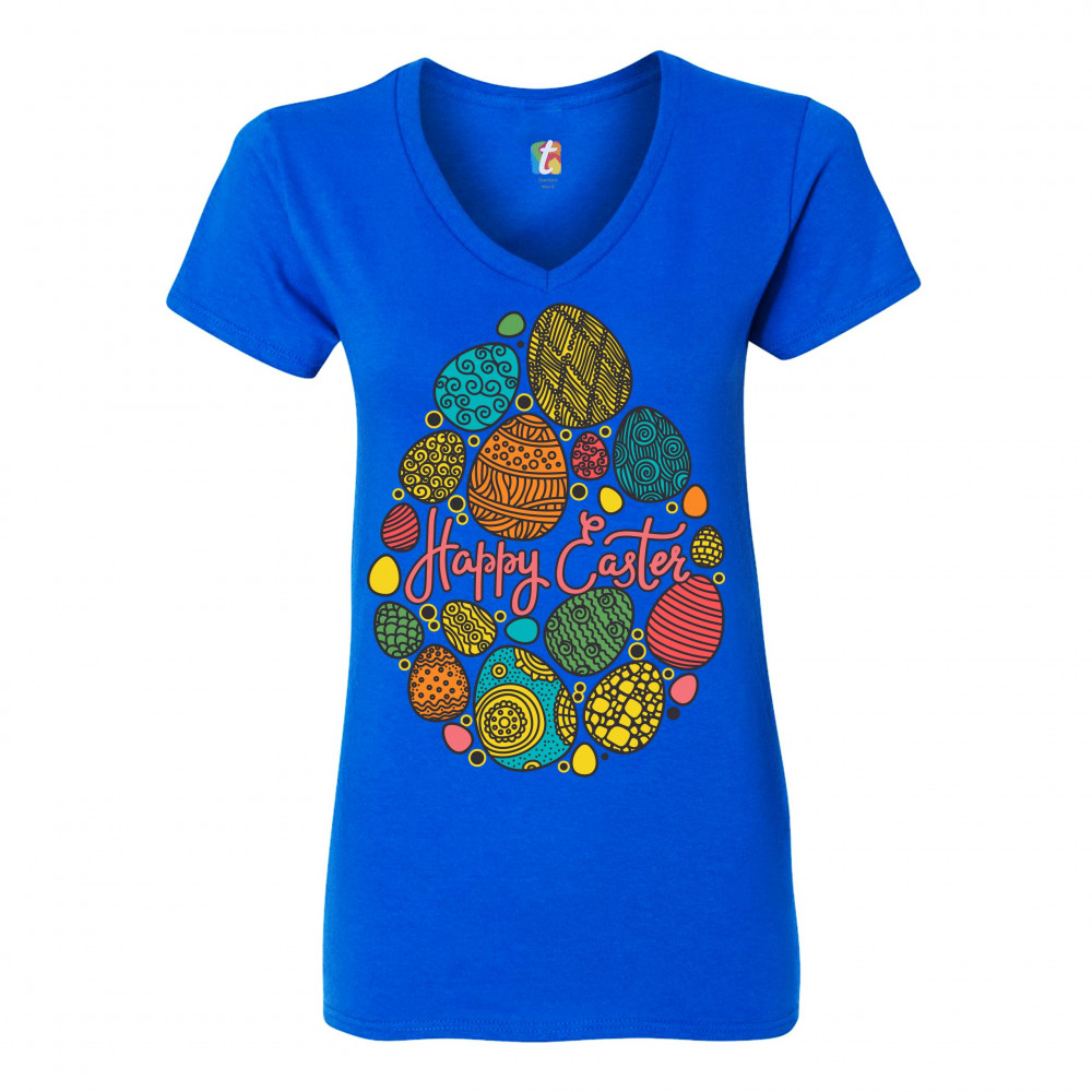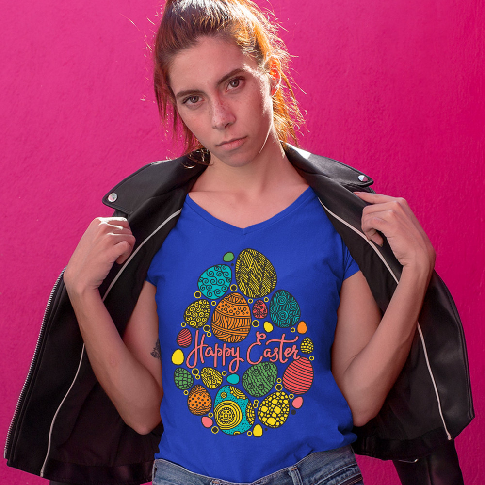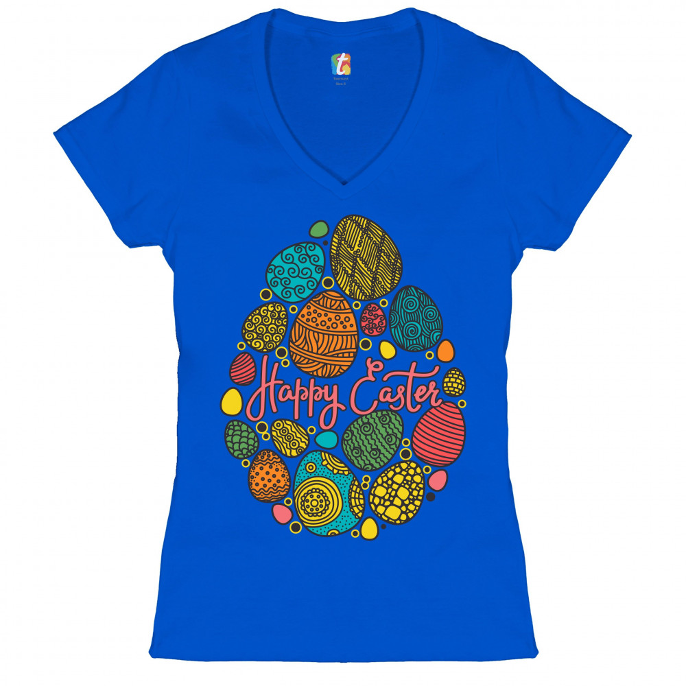 HAPPY EASTER women's v-neck t-shirt pascha easter eggs jesus ressurection tee royal blue