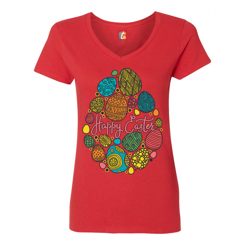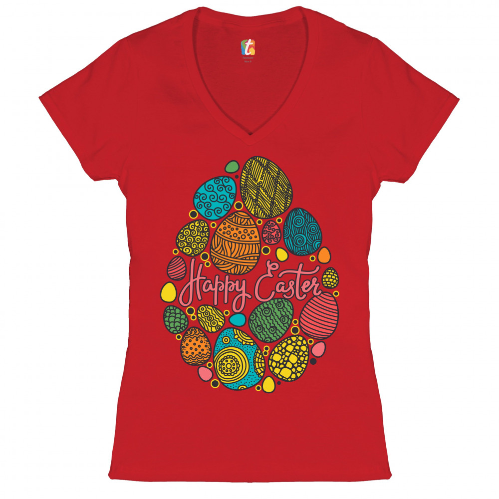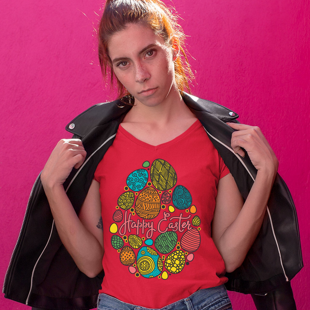 HAPPY EASTER women's v-neck t-shirt pascha easter eggs jesus ressurection tee red