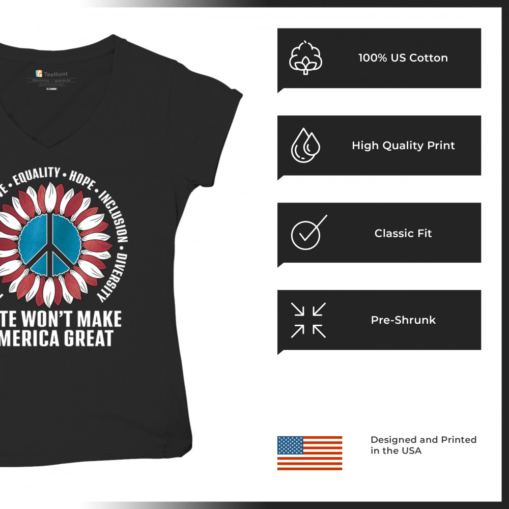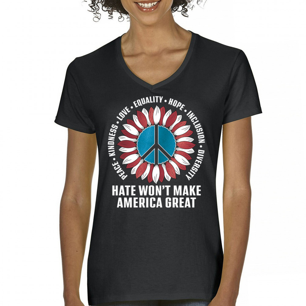 Embrace the message of love, equality, and unity with this eye-catching design. The sunflower and peace symbol represent a commitment to kindness and inclusion, rejecting hate and division. Perfect for those who support liberal values, this design is a bold statement against negativity and for a brighter future. Wear it proudly to show your belief in a diverse, united America. Let this design be a symbol of hope and progress for all.