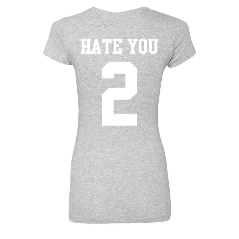 HATE YOU 2 v-neck t-shirt funny offensive humor gray