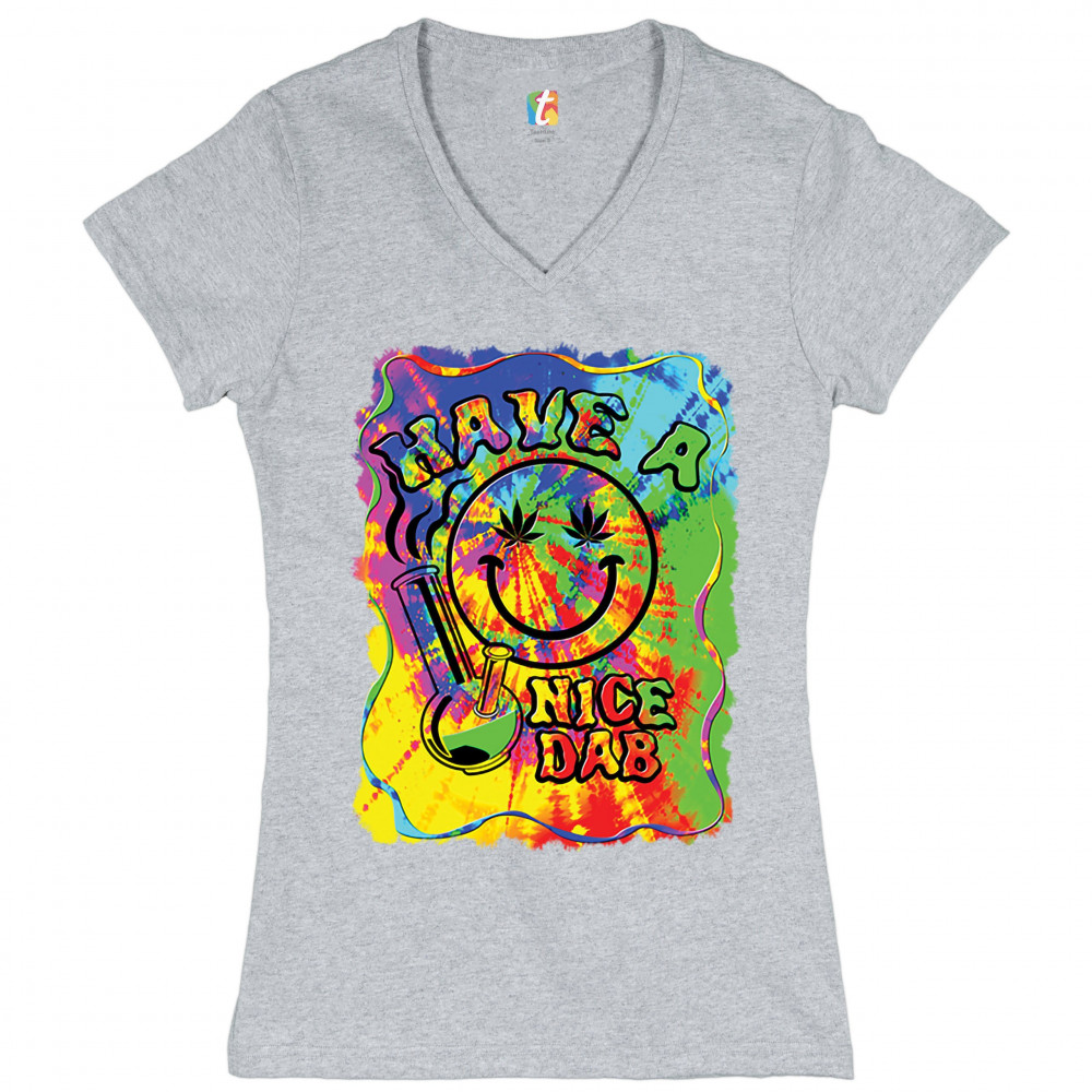HAVE A NICE DAB women's v-neck t-shirt 420 happy face hitting a weed bong tee gray