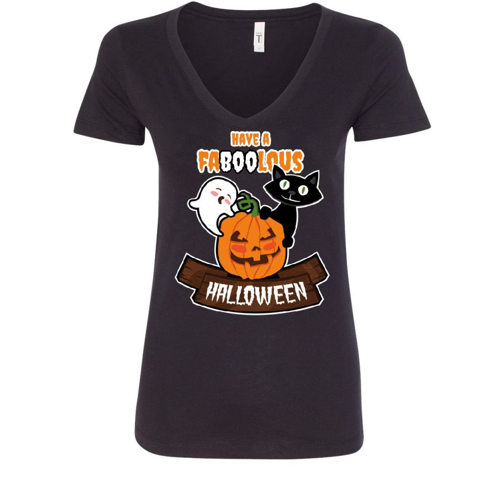 HAVE A FABOOLOUS HALLOWEEN have faboolous halloween women's v-neck t-shirt funny ghost pumpkin black cat black