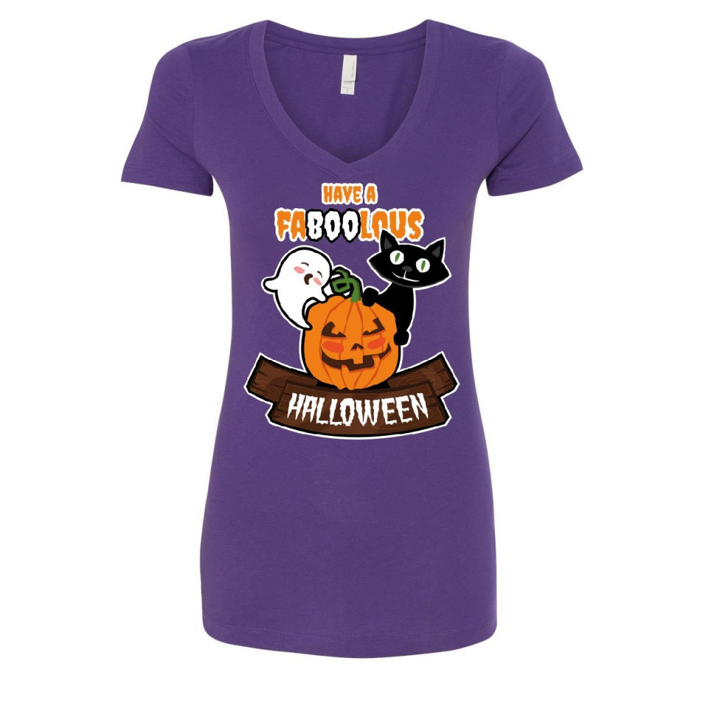 HAVE A FABOOLOUS HALLOWEEN have faboolous halloween women's v-neck t-shirt funny ghost pumpkin black cat purple