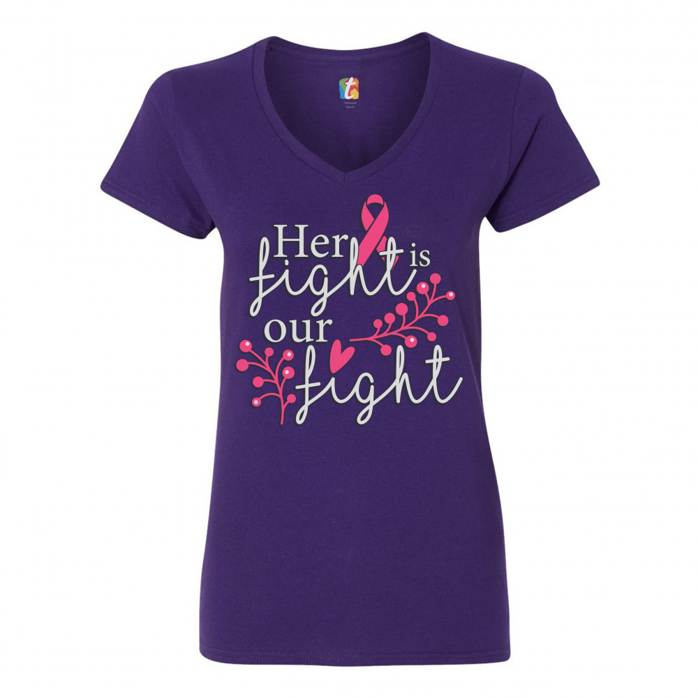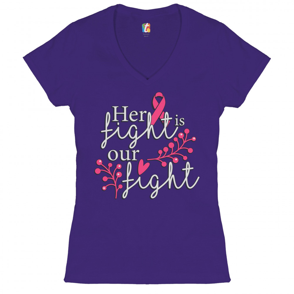 HER FIGHT IS OUR FIGHT women's v-neck t-shirt breast cancer pink ribbon tee purple