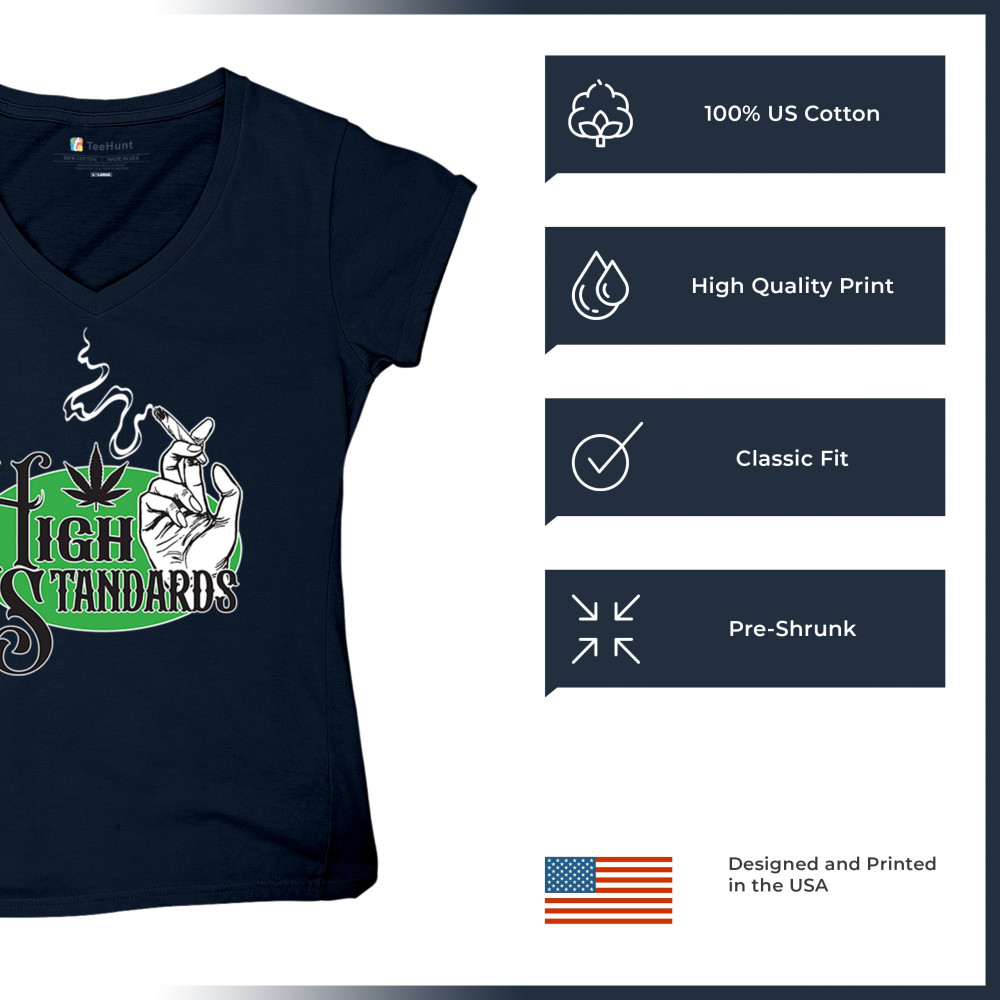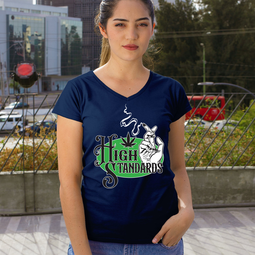 High Standards weed design with blunt humor and stoner pride. Features joint, cannabis leaf, pothead attitude, and classy chillout vibes.