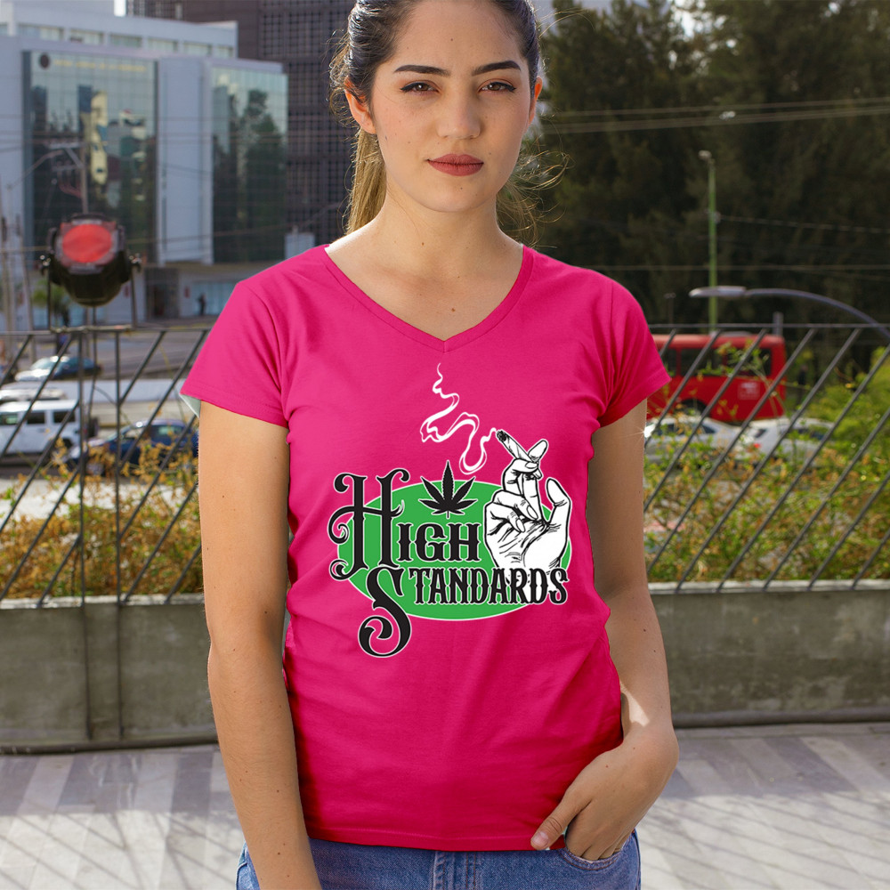 High Standards weed design with blunt humor and stoner pride. Features joint, cannabis leaf, pothead attitude, and classy chillout vibes.